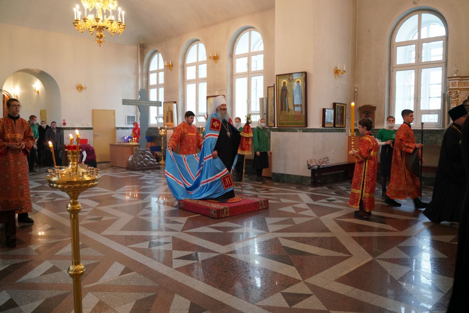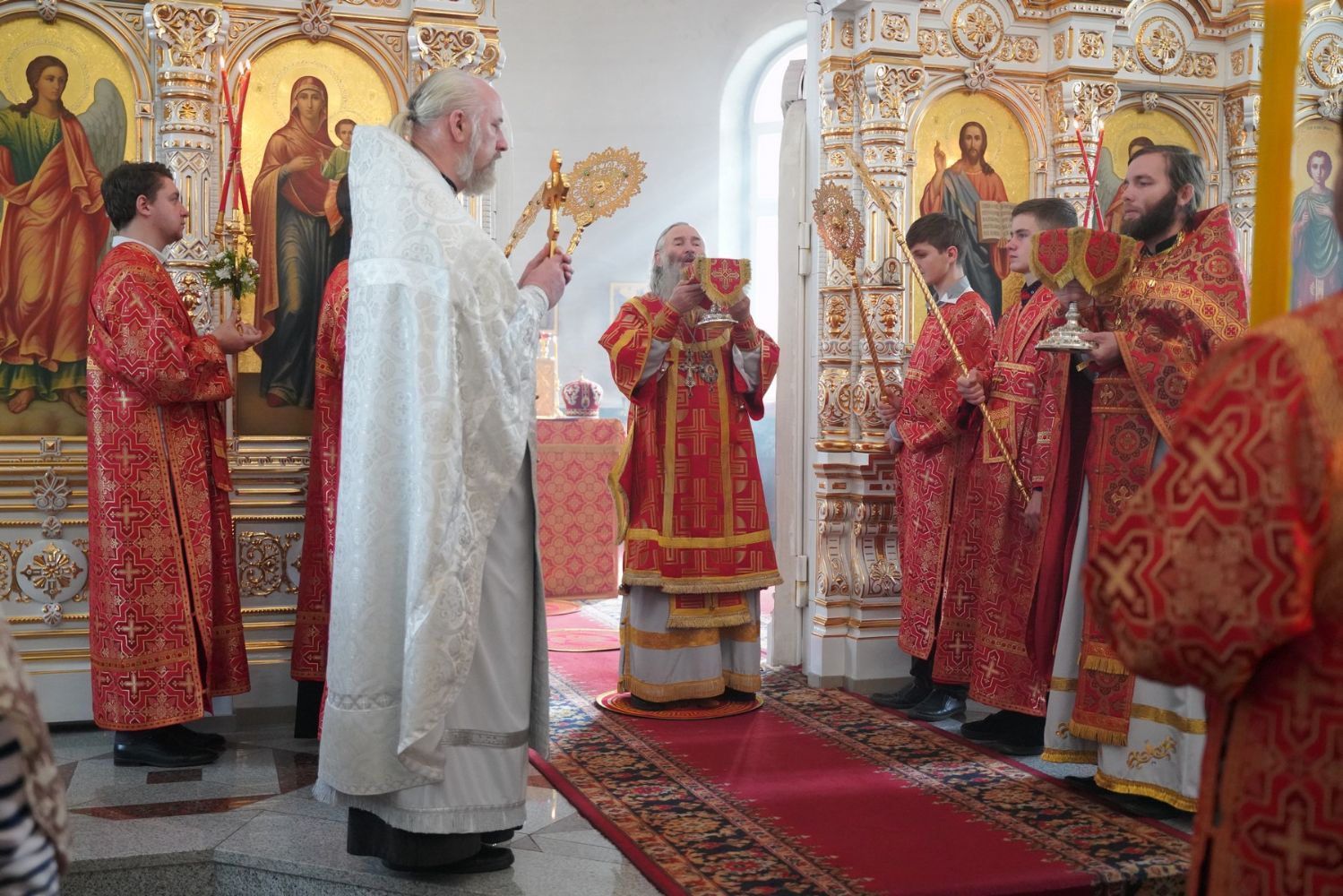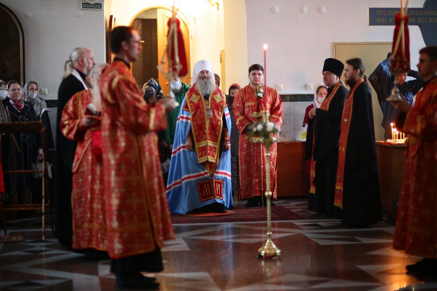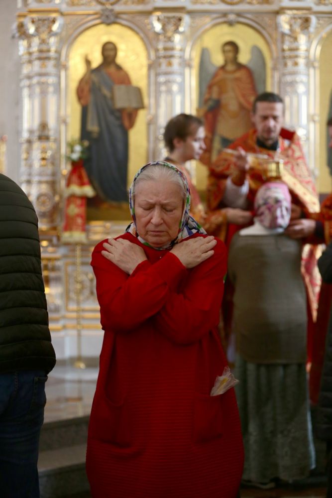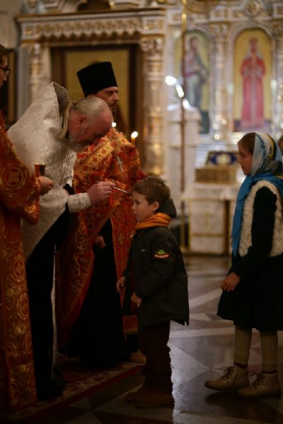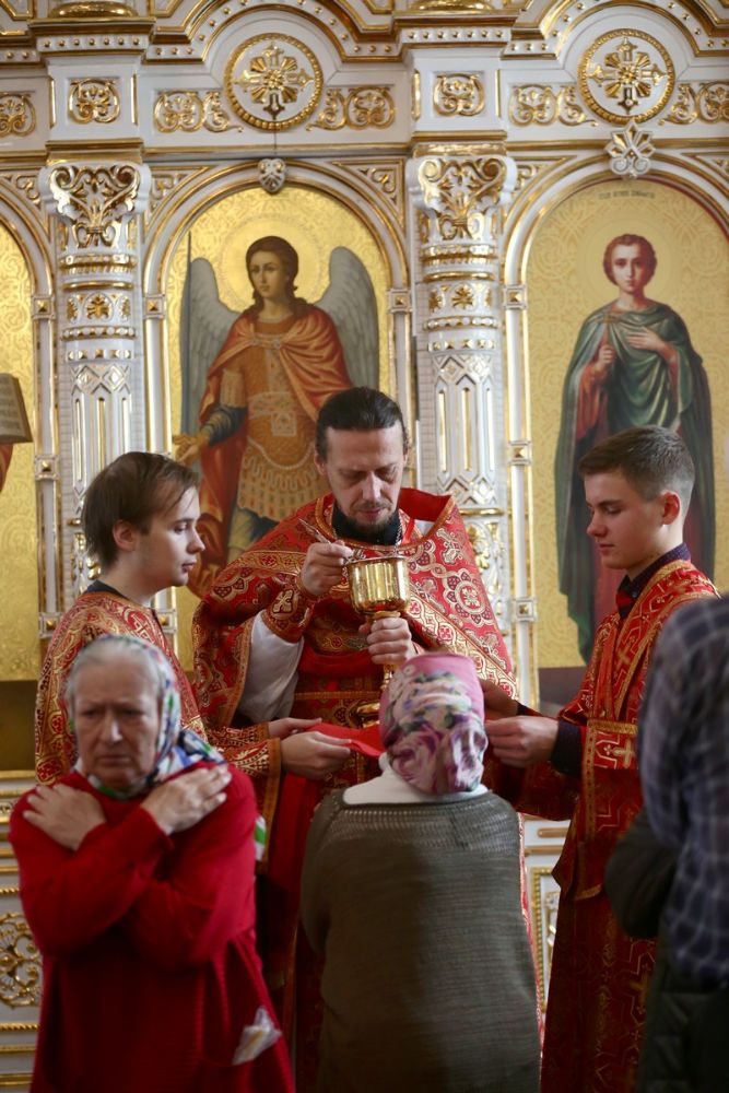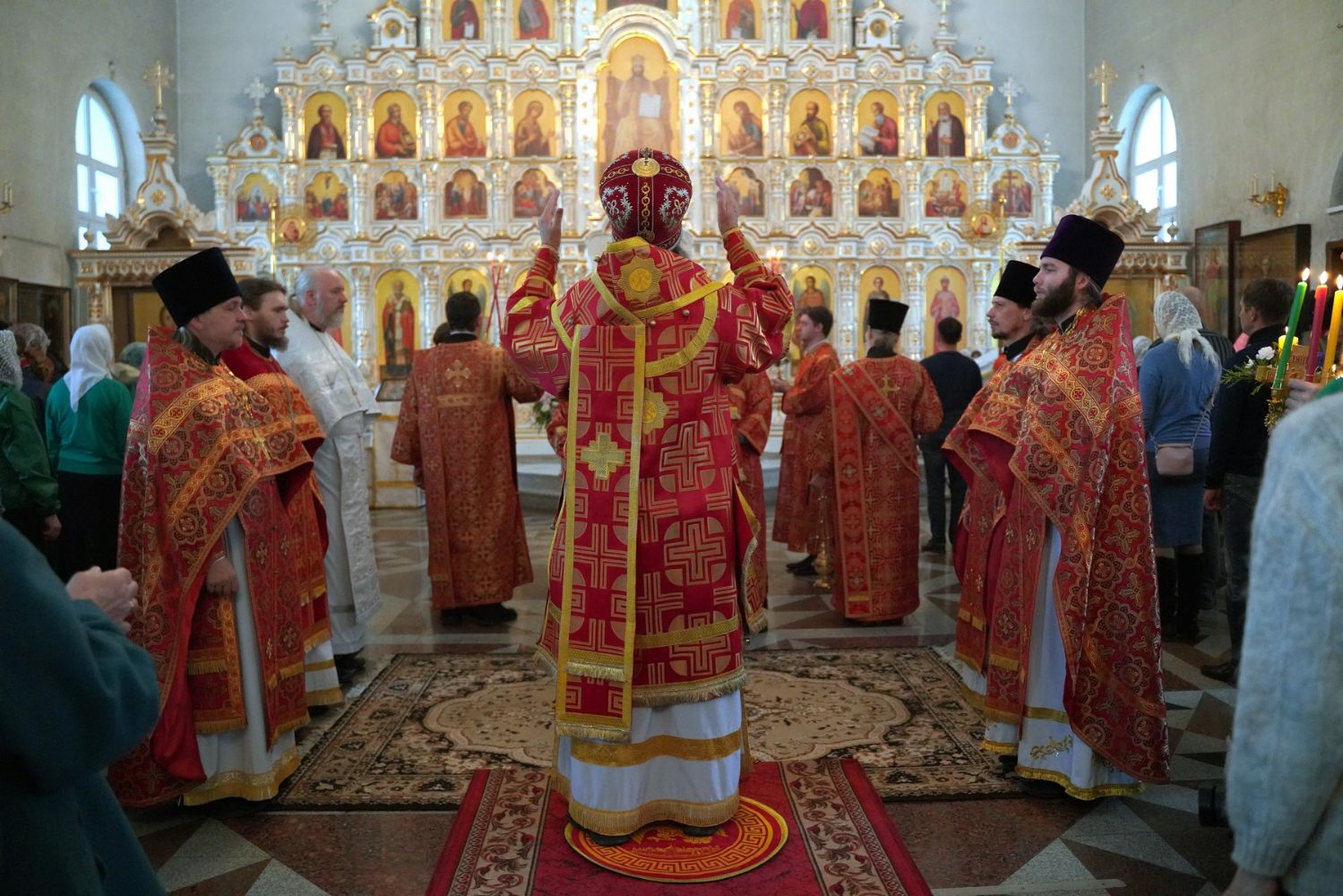 Архипастырю сослужили настоятель собора иерей Алексий Кирюшкин, клирики собора и протодиакон Михаил Козловский. Песнопения исполнял хор собора под управлением Алисы Вылегжаниной, за Литургией пел также детский хор под руководством регента Анастасии Полозовой.