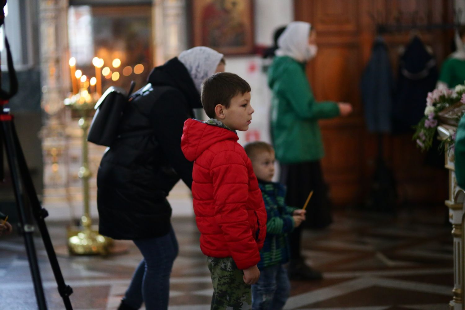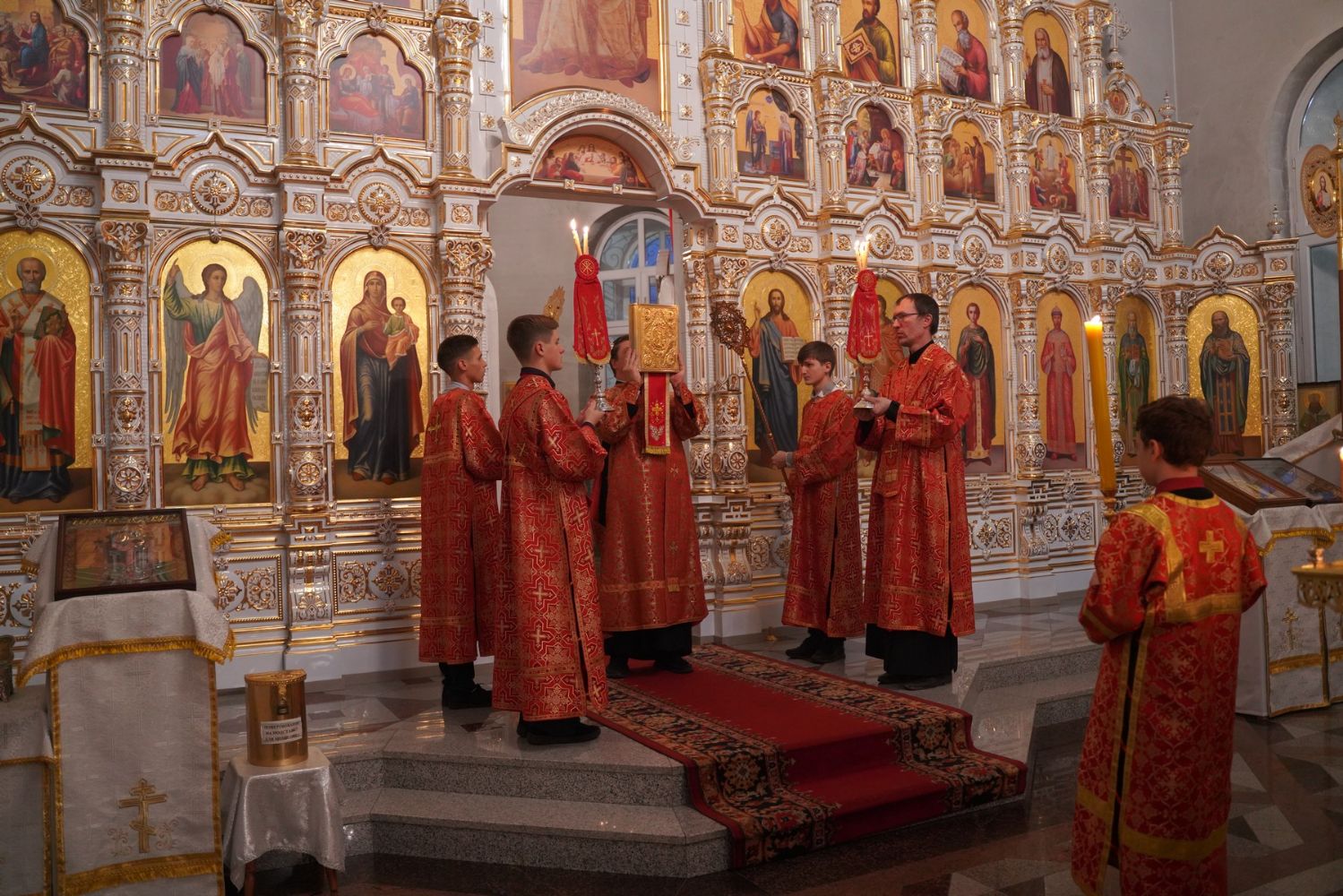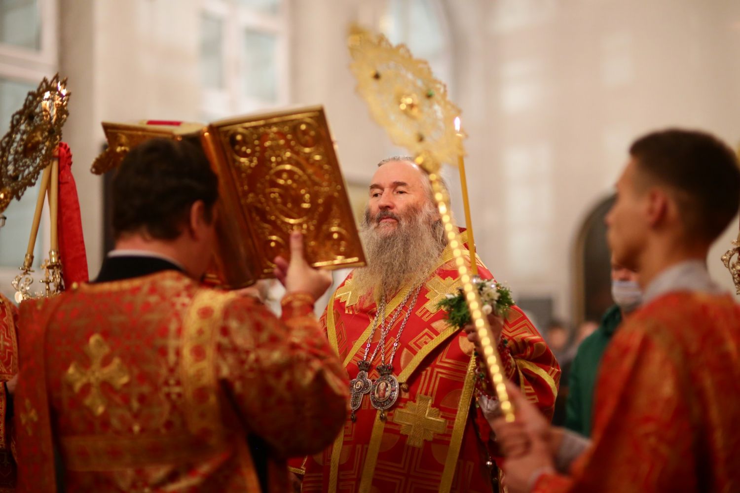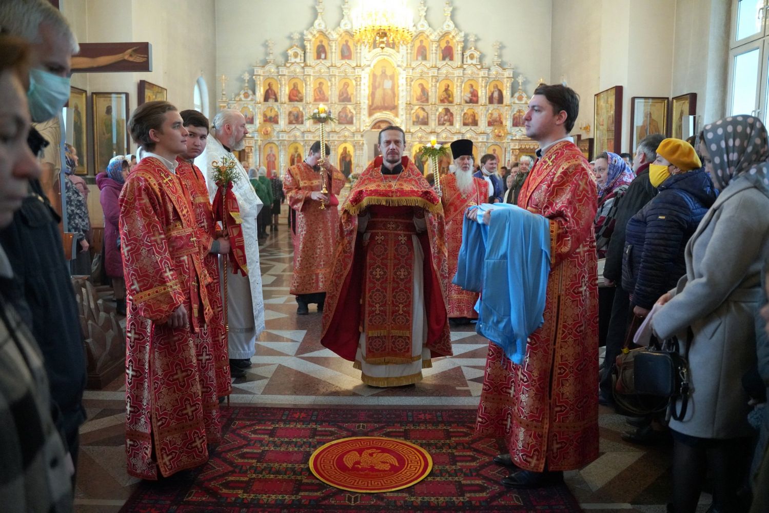 Архипастырю сослужили настоятель собора иерей Алексий Кирюшкин, клирики собора и протодиакон Михаил Козловский. Песнопения исполнял хор собора под управлением Алисы Вылегжаниной, за Литургией пел также детский хор под руководством регента Анастасии Полозовой.
