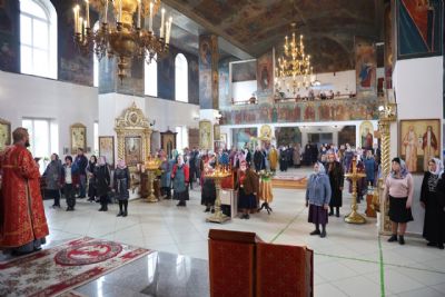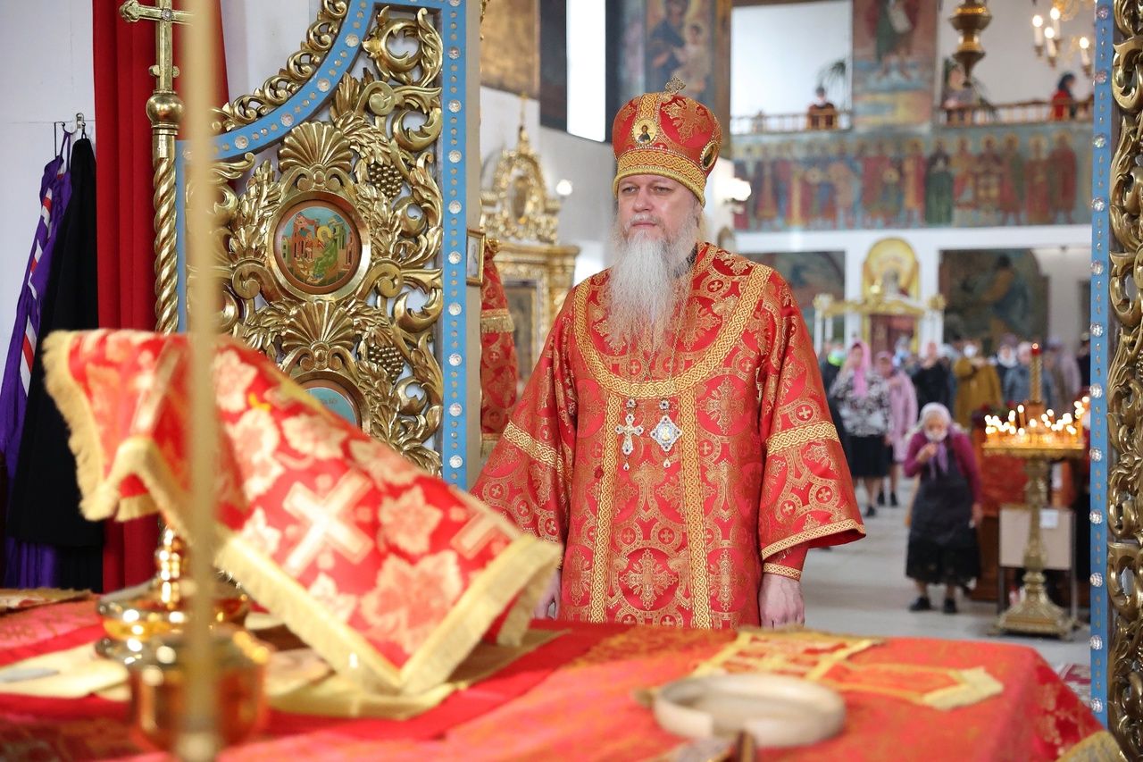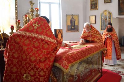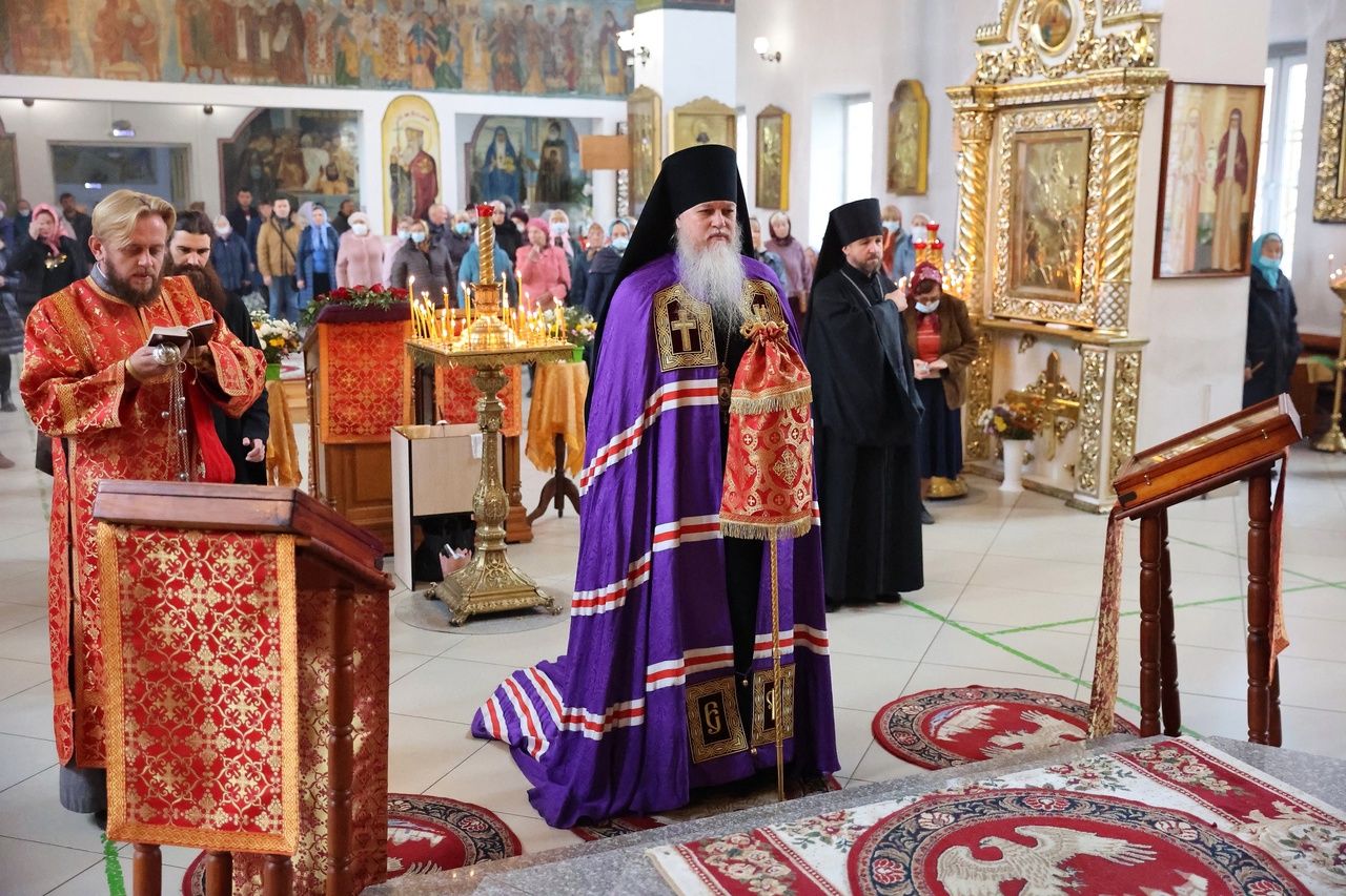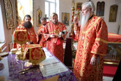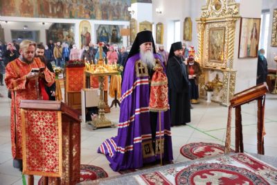 Его Преосвященству сослужили клирики собора иерей Иоанн Белинский, иерей Иоанн Лапшинский, иеромонах Авель Крашенинников, иерей Андрей Легостаев, диакон Димитрий Карпетченко. Песнопения исполнял архиерейский хор под управлением Любови Михеевой.