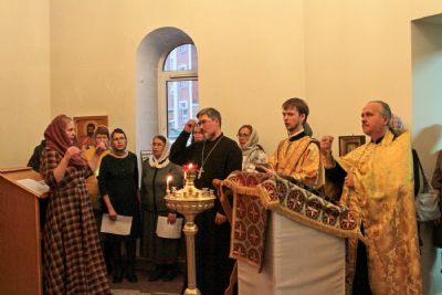 Молебен на начало учебного года на Православных образовательных курсах во имя святого священномученика Адриана Троицкого состоялся вечером 3 октября в домовом храме в честь преподобномученицы великой княгини Елисаветы Православного центра.