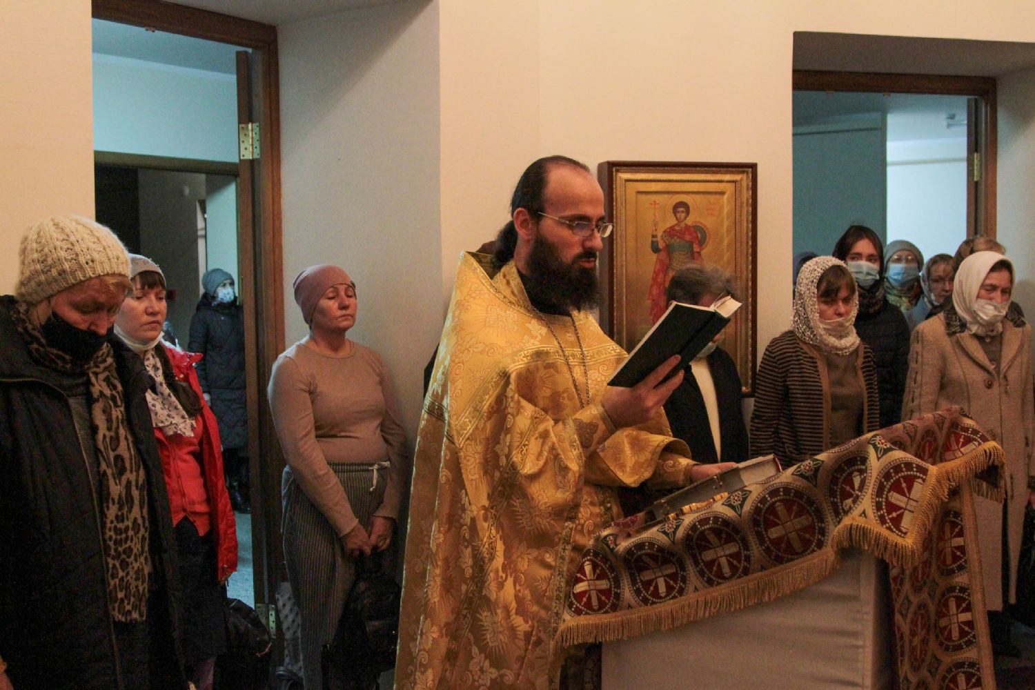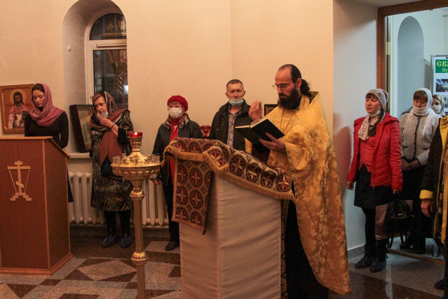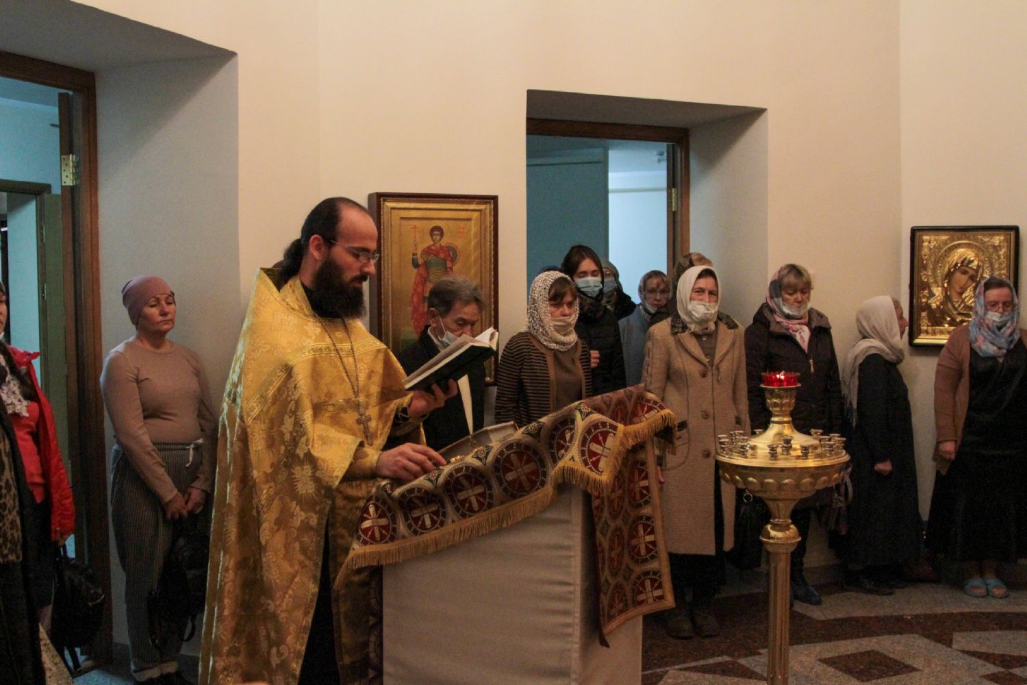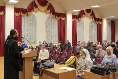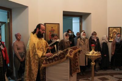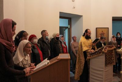 Руководитель кружка иерей Иоанн Кристев отслужил молебен на начало учебного года в домовом храме в честь преподобномученицы великой княгини Елисаветы. После этого все поднялись в актовый зал и продолжили разбор духовного смысла Евангелия от Марка.