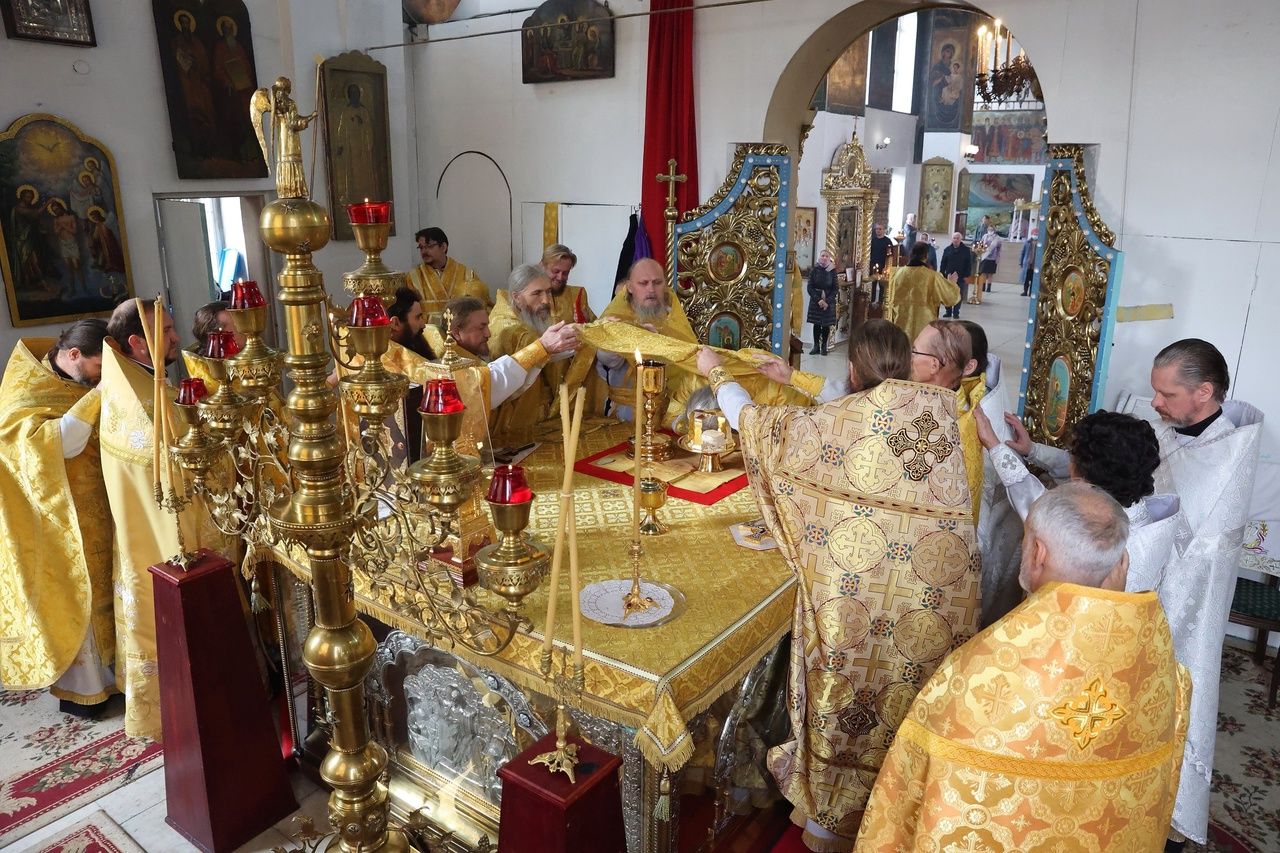 Праздничную Божественную литургию в Никольском кафедральном соборе возглавил епископ Волжский и Сернурский Феофан в сослужении духовенства Волжской епархии. Богослужебные песнопения исполнял архиерейский хор под управлением Любови Михеевой.