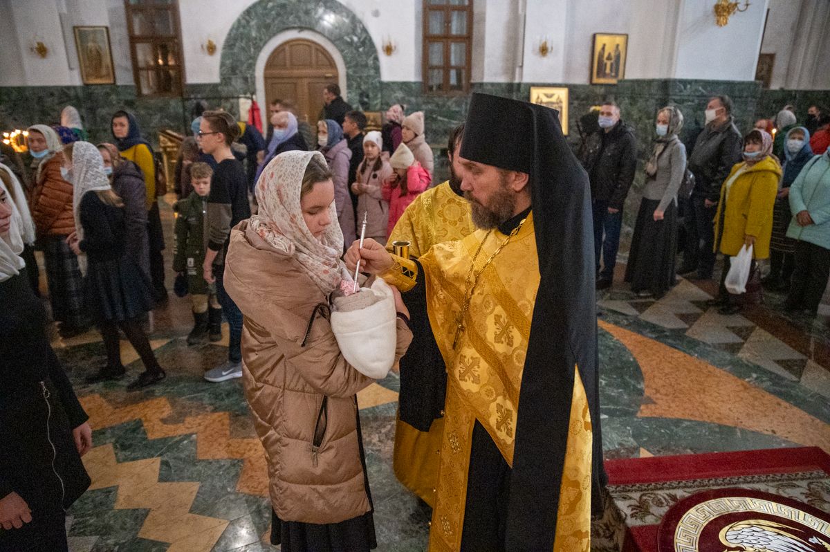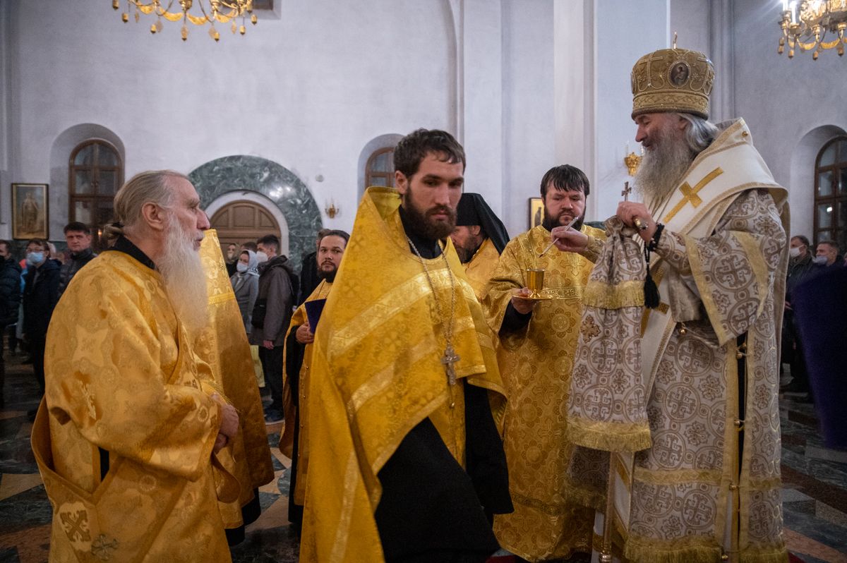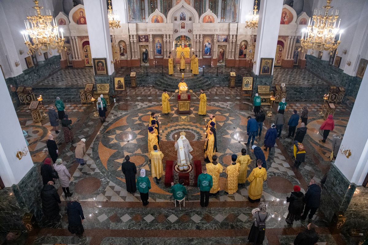 За Литургией Его Высокопреосвященству сослужили настоятель Серафимовского храма протоиерей Александр Бачурин, клирики храма и протодиакон Михаил Козловский. Песнопения исполнял хор храма под управлением Елены Умрихиной и детский хор воскресной школы «Радость моя» под руководством регента Дарии Кудряшовой.