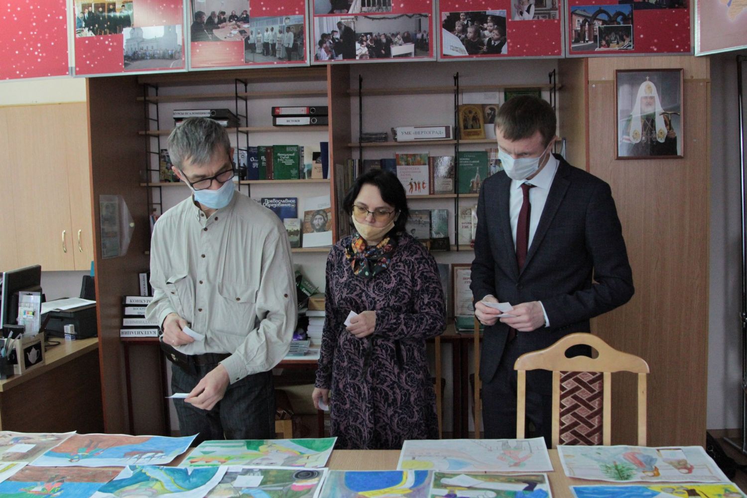В работе жюри приняли участие: руководитель Отдела религиозного образования и катехизации Йошкар-Олинской и Марийской епархии протоиерей Андрей Норкин, начальник отдела межнациональных и межконфессиональных отношений Министерства культуры, печати и по делам национальностей РМЭ, педагог дополнительного образования ГБОУ ДО РМЭ «Дворец творчества детей и молодежи» изостудии «Творец» Белугин Ю.А., педагог дополнительного образования ГБОУ ДО РМЭ «Дворец творчества детей и молодежи» Суркова Е.Г., художник-иконописец Гаврилова Е.М., сотрудник Отдела религиозного образования Йошкар-Олинской и Марийской епархии Рыбакова М.Н.