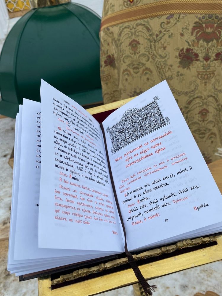 После богослужения настоятель Сретенского храма иерей Артемий Промович совершил чин на водружение креста на купол воссозданного главного придела храма.