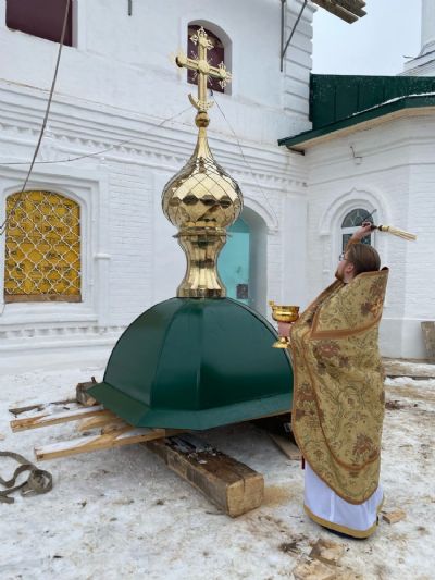 В Сретенском храме с. Азаново совершен чин на водружение креста на купол храма 2834