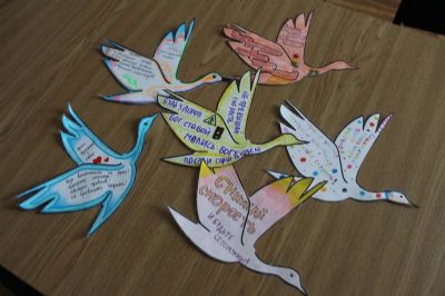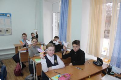 Гимназисты-пятиклассники изготовили бумажных журавликов, на каждом из которых написали свои пожелания водителям: «Снижайте скорость и будьте осторожны», «Ангела-хранителя в дорогу! Будьте внимательны и уступайте дорогу пешеходам», «Бог с тобой! Посади сына в автокресло!», «Ангел-хранитель с тобой! Будь внимательным на дороге! Пропускай пешеходов, соблюдай правила, не превышай скорость!» и т.п.