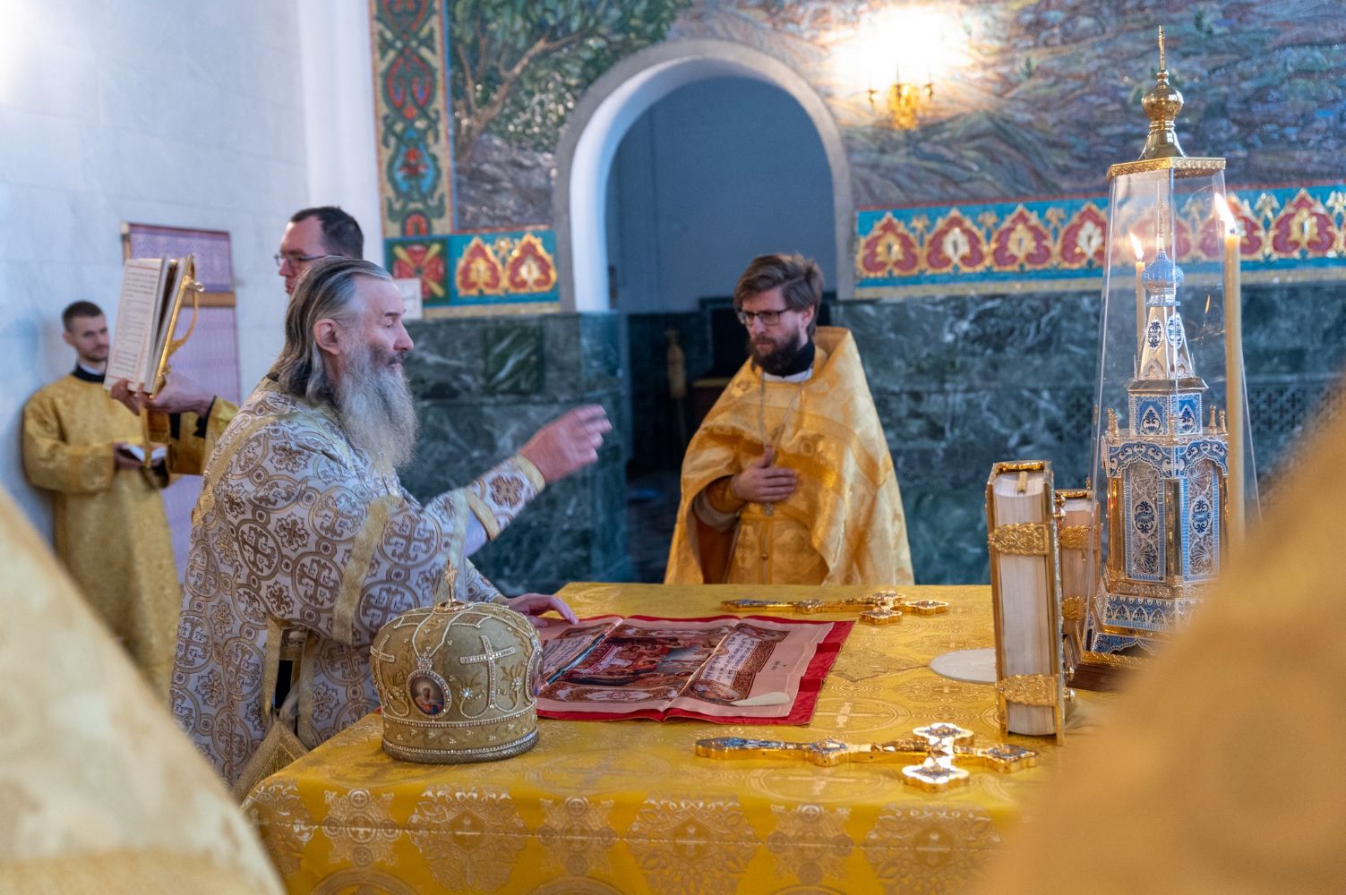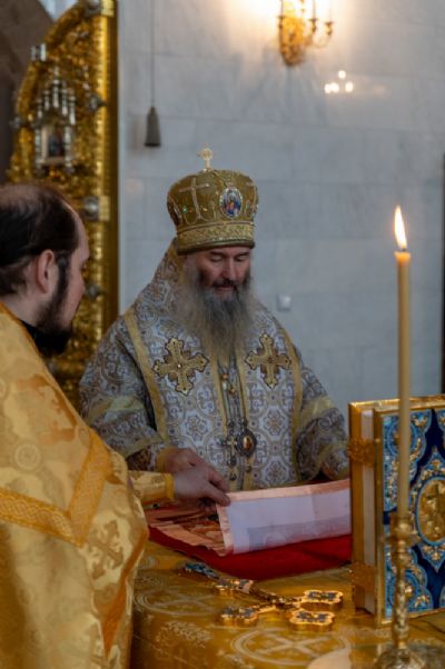 Владыке сослужили секретарь Йошкар-Олинского епархиального управления иеромонах Серафим (Пасанаев), клирики кафедрального собора и протодиакон Михаил Козловский. Песнопения исполнял хор «Благовест» под управлением регента Татьяны Черновой.