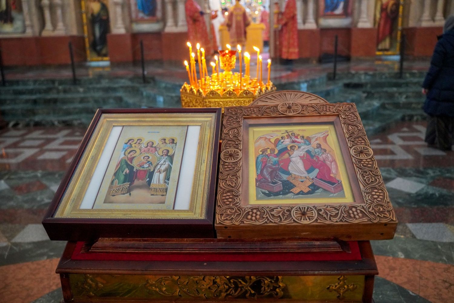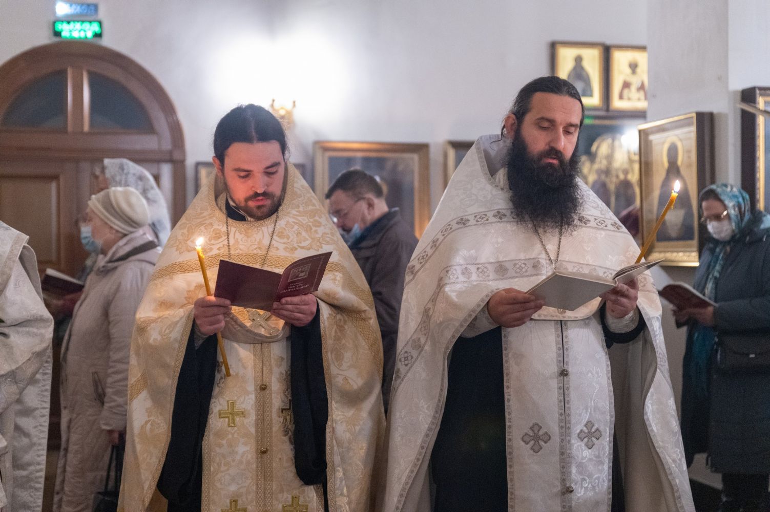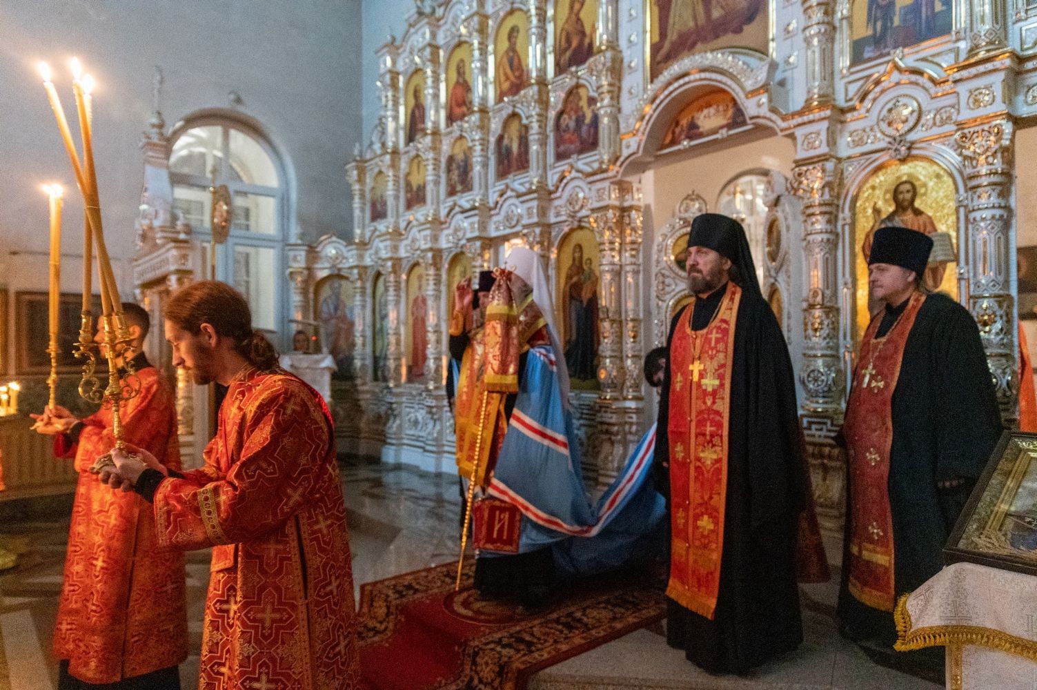 Вечером архипастырю сослужили секретарь Йошкар-Олинского епархиального управления иеромонах Серафим (Пасанаев), настоятель Воскресенского собора иерей Алексий Кирюшкин, клирики собора, протодиакон Михаил Козловский и диакон Игорь Коваль. Песнопения исполнял хор собора под управлением Алисы Вылегжаниной.