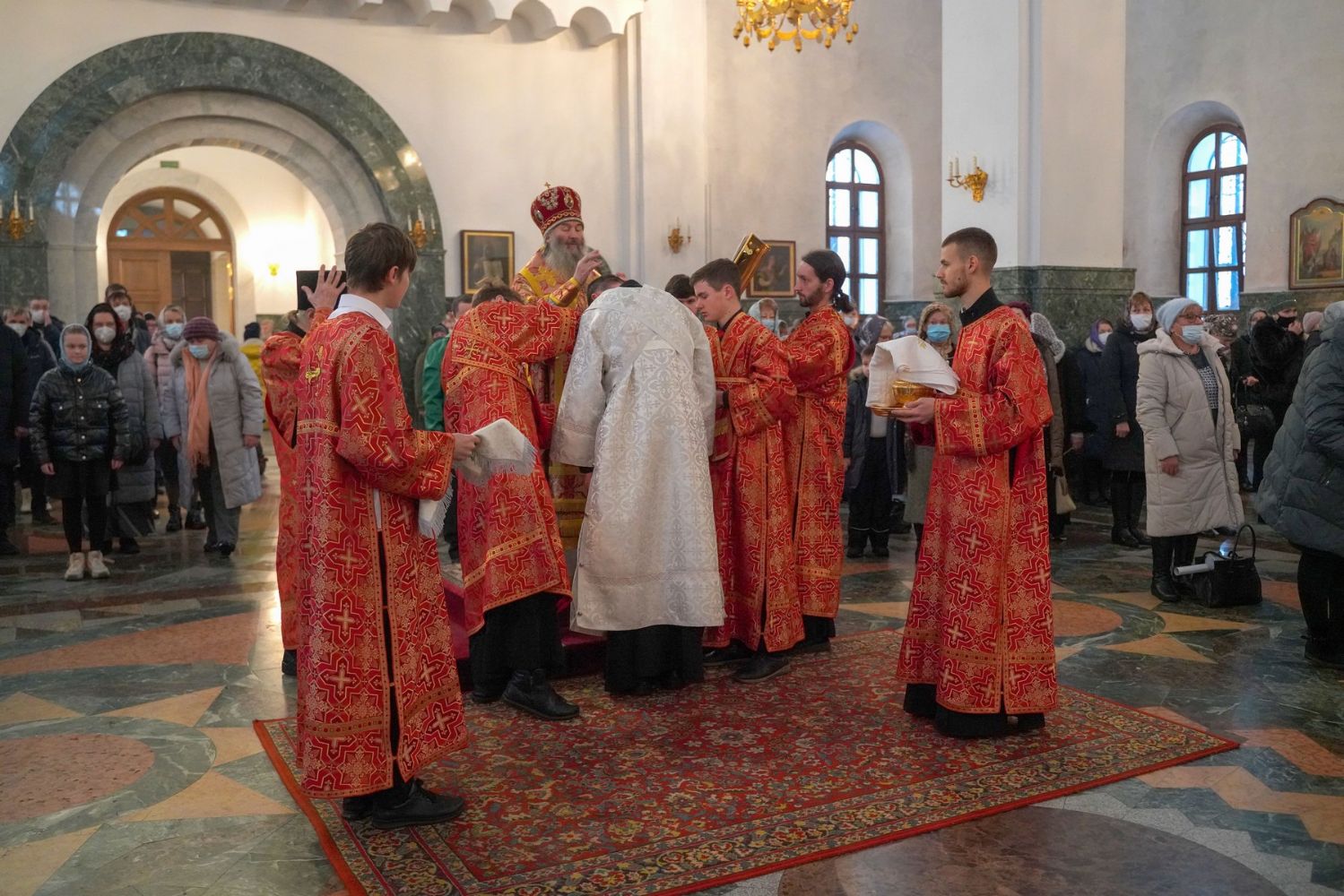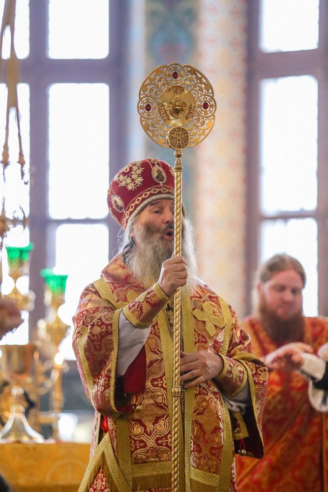 За Божественной литургией Его Высокопреосвященству сослужили секретарь Йошкар-Олинского епархиального управления иеромонах Серафим (Пасанаев), ключарь кафедрального собора протоиерей Сергий Поглазов, клирики собора, настоятель храма Казанской иконы Богородицы иерей Александр Коваль и протодиакон Михаил Козловский. Песнопения испоняли старший и младший составы хора «Благовест» под руководством регентов Татьяны Черновой и Надежды Поздеевой.
