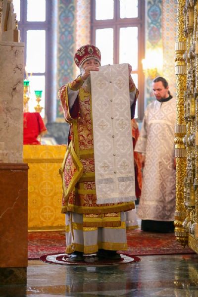 После Евхаристического канона митрополит Иоанн рукоположил в диаконский сан иподиакона Алексея Ершова. Сорокоуст диакон Алексий будет проходить в Благовещенском кафедральном соборе.
