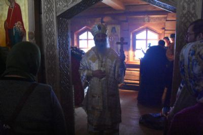 Богослужение проходило в приделе святителя Нектария Эгинского. Владыке сослужили секретарь Йошкар-Олинского епархиального управления иеромонах Серафим (Пасанаев), благочинный Северо-Западного церковного округа, настоятель храма пророка Илии п. Килемары протоиерей Андрей Романов, клирик храма преподобного Серафима Саровского г. Йошкар-Олы протоиерей Василий Лихачев, старший священник монастыря священноинок Паисий (Киселев), клирик храма пророка Илии п. Килемары иерей Димитрий Васенев и протодиакон Михаил Козловский. Песнопения исполнял мужской хор храма Сретения Господня с. Кучки.