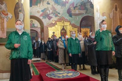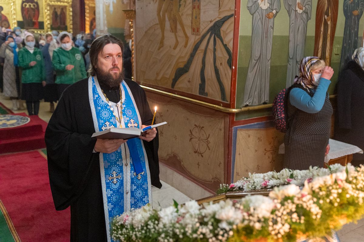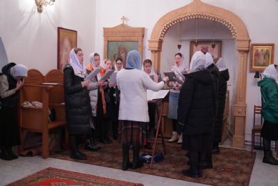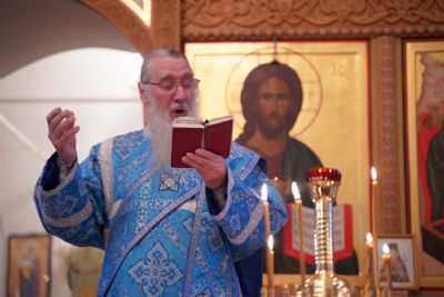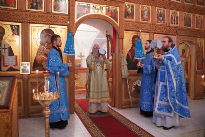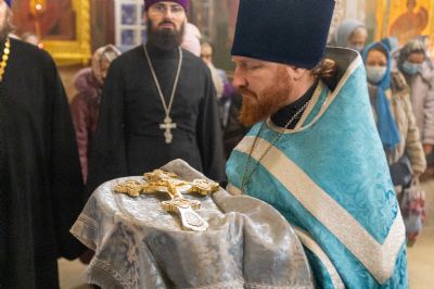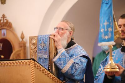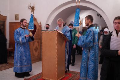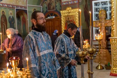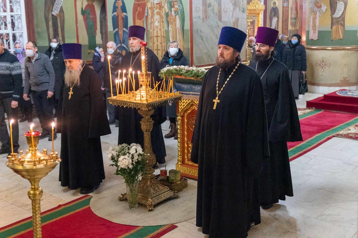 После Литургии владыка с сослужащими совершили славление: пропели тропарь, кондак и величание праздника Введения во храм Пресвятой Богородицы.
