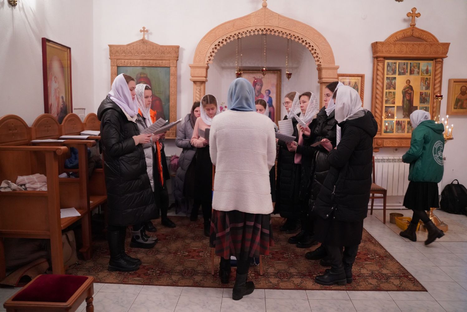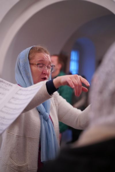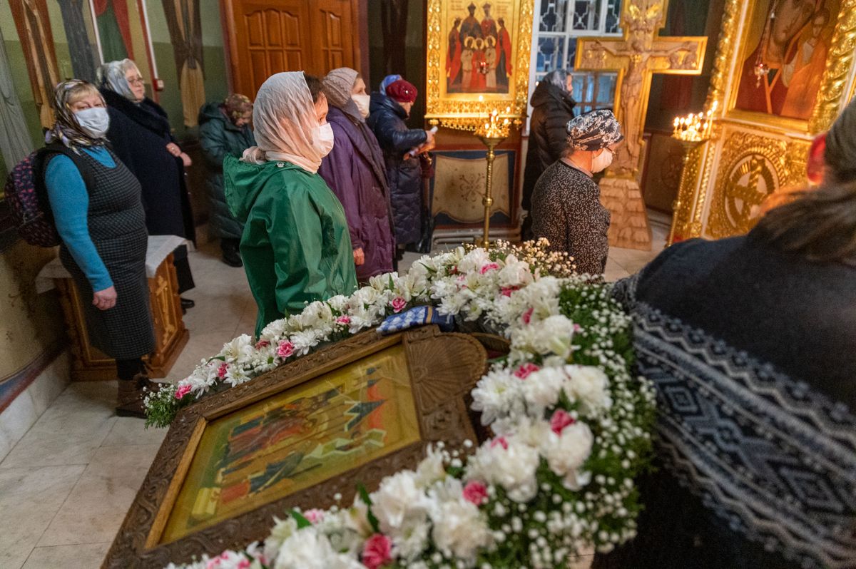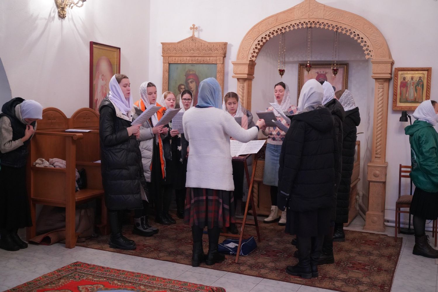 После Литургии владыка с сослужащими совершили славление: пропели тропарь, кондак и величание праздника Введения во храм Пресвятой Богородицы.