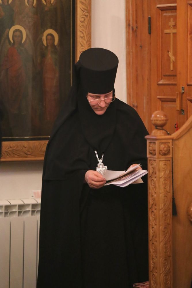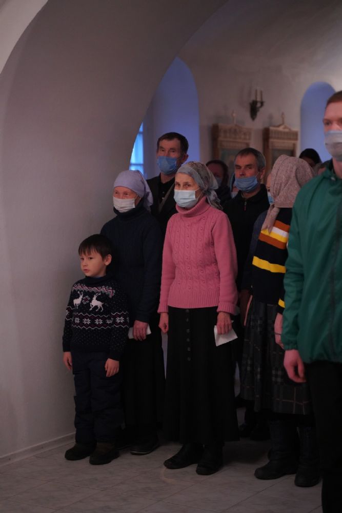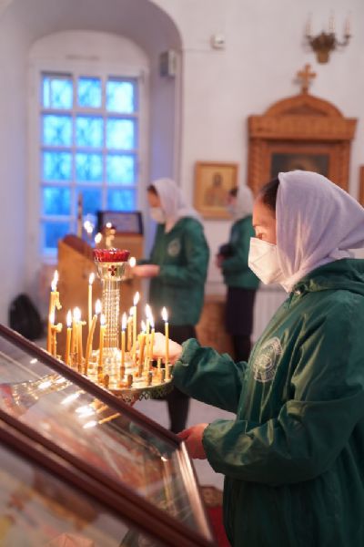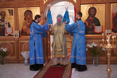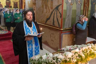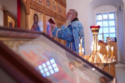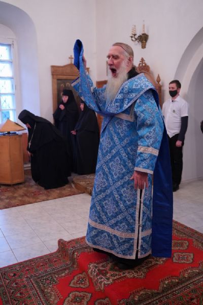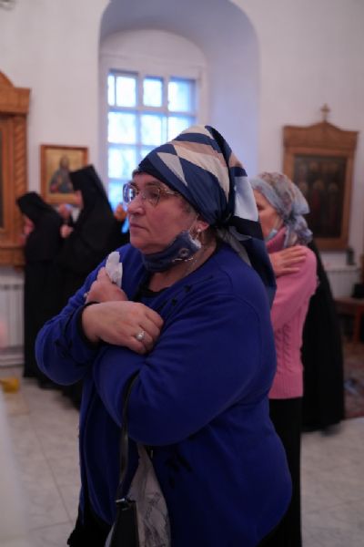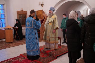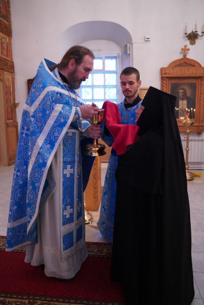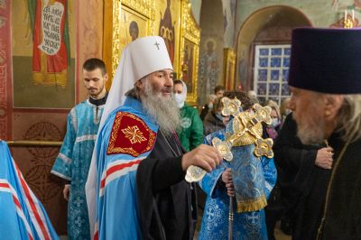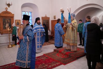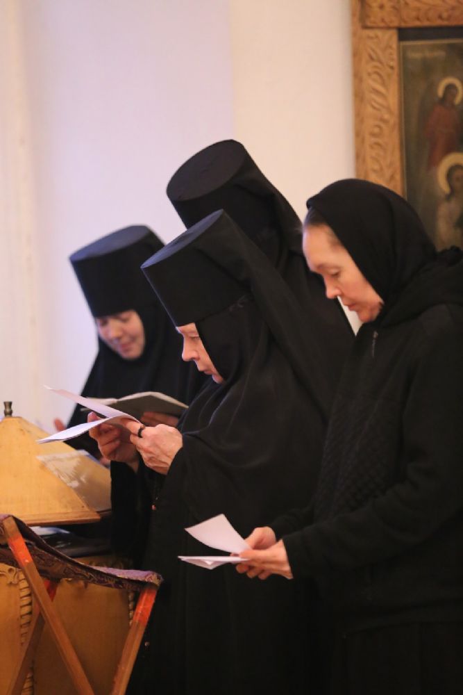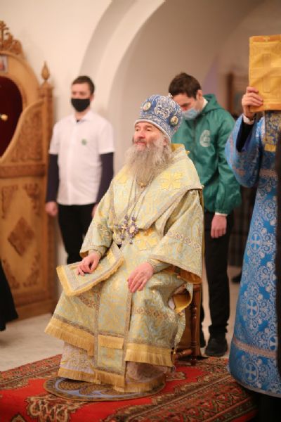 За Литургией архипастырю сослужили секретарь Йошкар-Олинского епархиального управления иеромонах Серафим (Пасанаев), клирик монастыря иерей Михаил Лежнин и протодиакон Михаил Козловский. Песнопения исполнял детско-юношеский хор «Благовест» под руководством регента Татьяны Черновой.