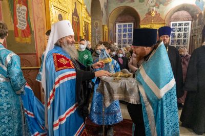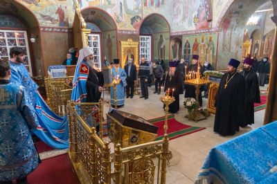 Митрополит Иоанн поздравил всех с престольным праздником Мироносицкого монастыря – домовый храм в честь Введения во храм Пресвятой Богородицы, первый восстановленный в Ежовской обители, был освящен в 1993 году.