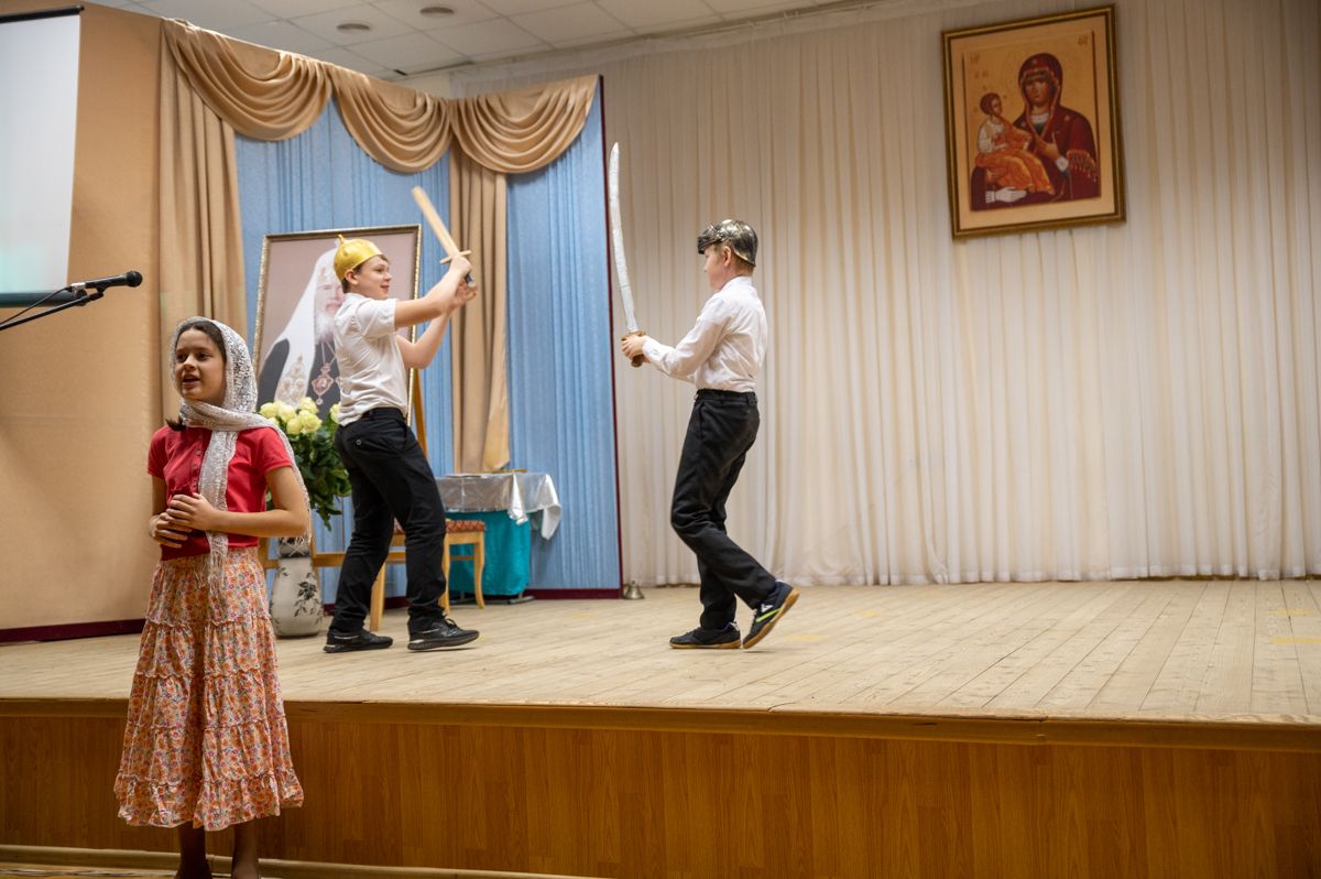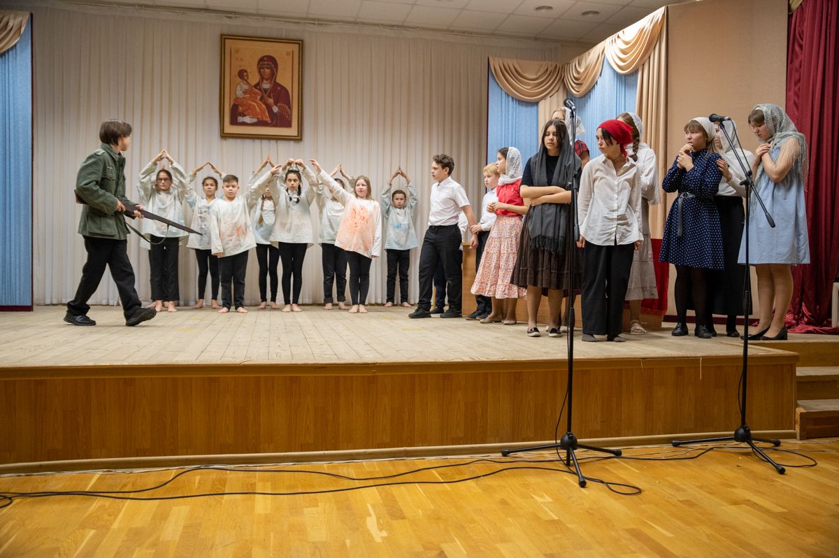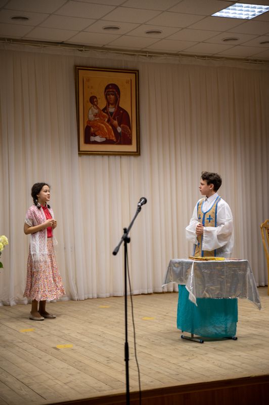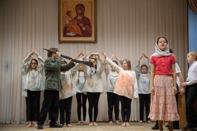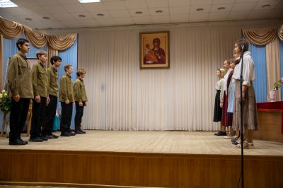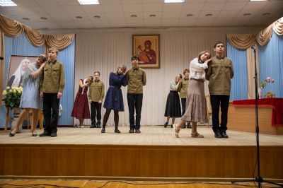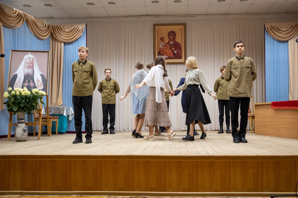 В программе вечера прозвучали духовные песнопения в исполнении детско-юношеского хора «Благовест» под управлением регента Татьяны Черновой. Также был показан спектакль «Военное детство Алеши Ридигера», подготовленный молодежным театром «Встречая чудо» гимназии имени Сергия Радонежского г. Йошкар-Олы. Спектакль рассказывает о страданиях детей в годы войны. Юный Алеша (будущий Патриарх) вместе с отцом – священником Михаилом Ридигером посещал заключенных концлагерей, в том числе детских…