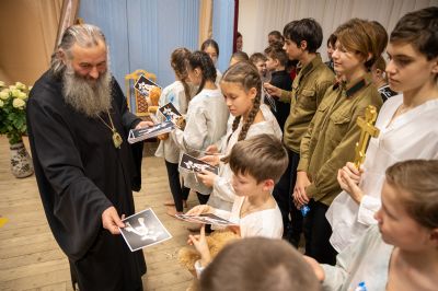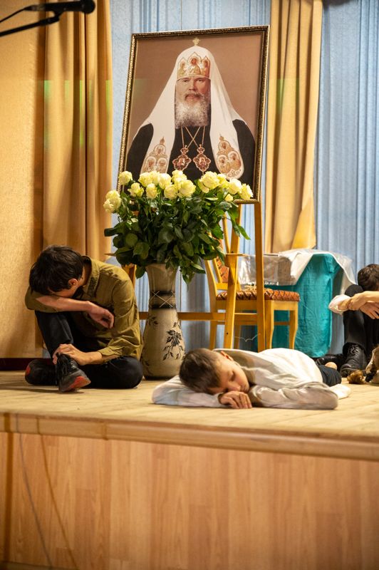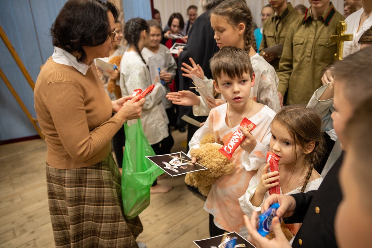 В завершение хор пропел «Вечную память» приснопоминаемому Патриарху. На молитвенную память о почившем Предстоятеле Русской Православной Церкви владыка Иоанн раздал юным актерам и хористам открытки с изображением и высказываниями Патриарха Алексия II и шоколадки.