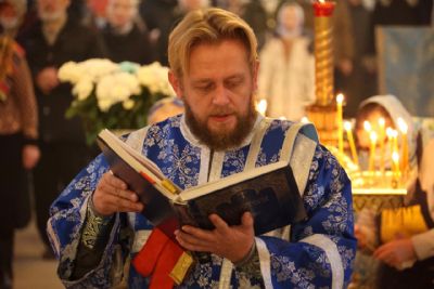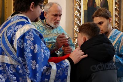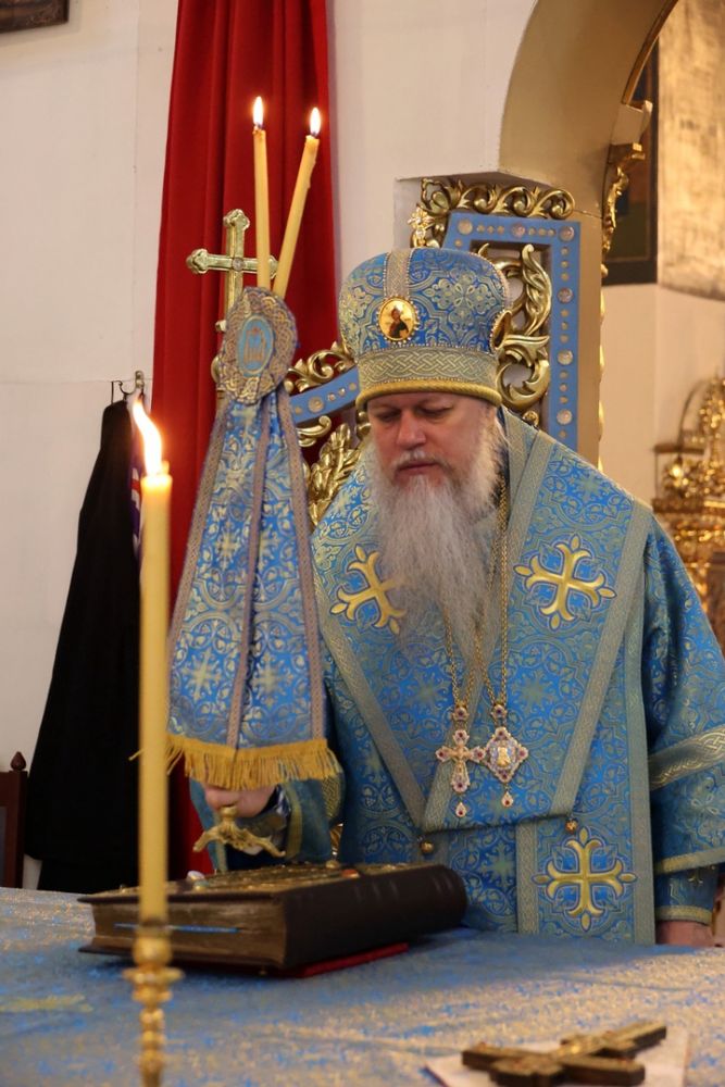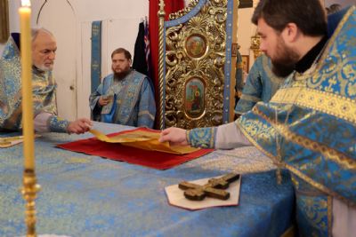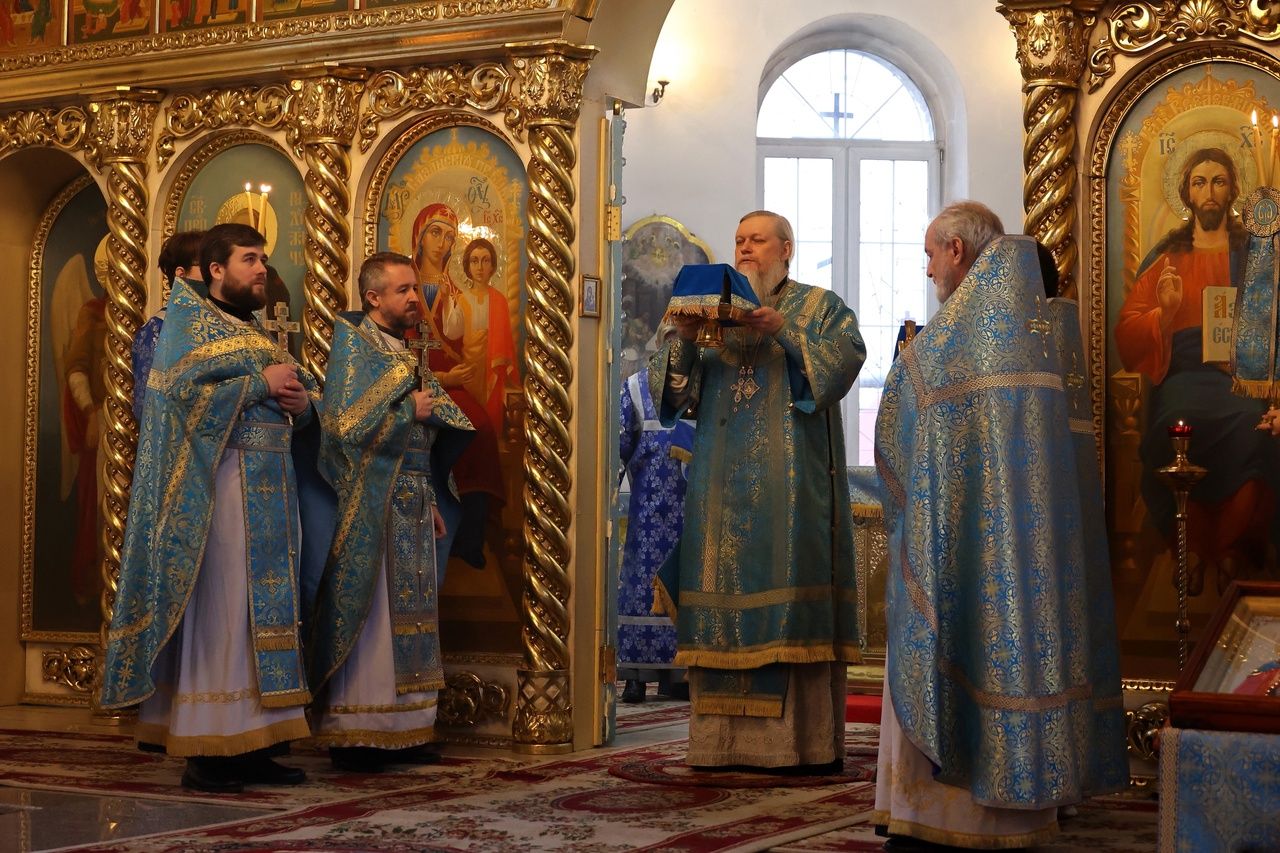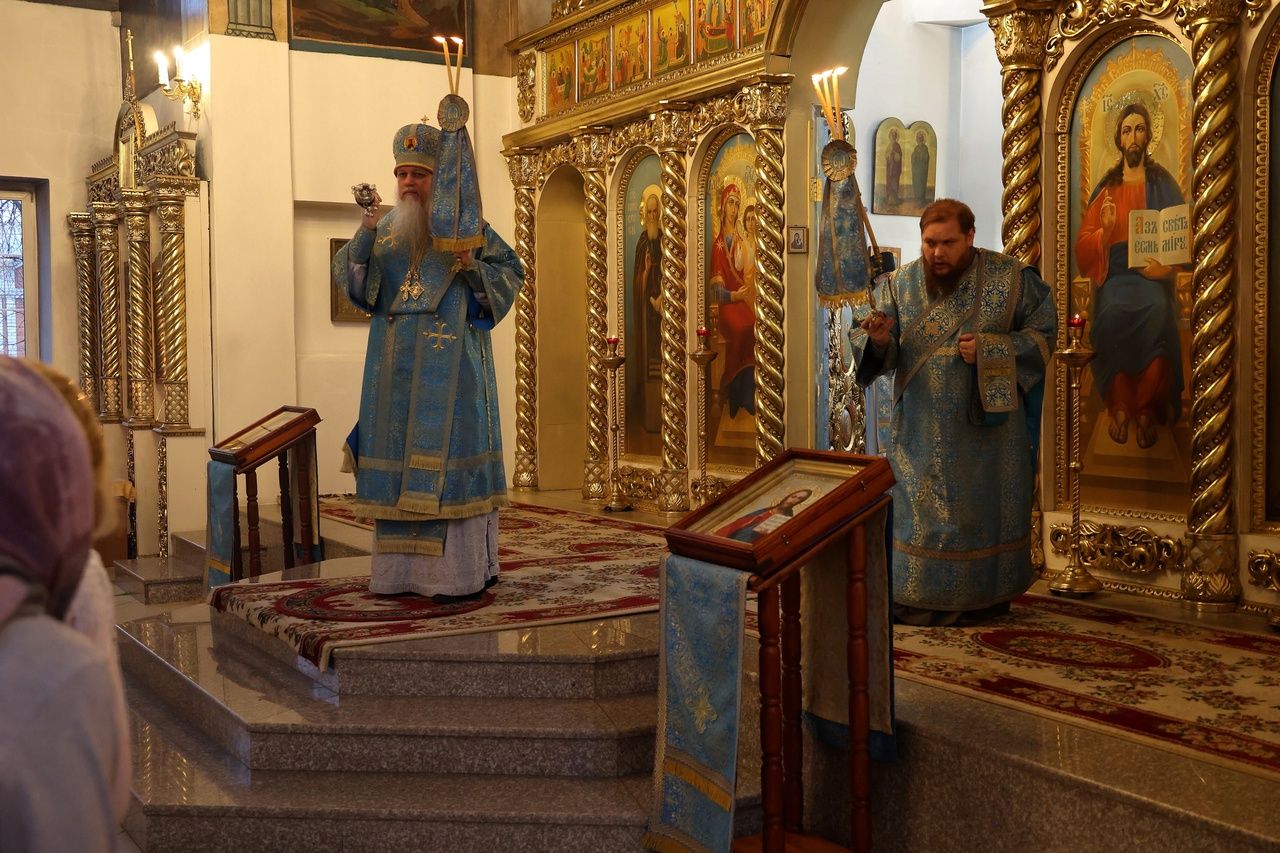 Владыке сослужили клирики собора. Песнопения исполняли два хора: архиерейский и детско-юношеский.
