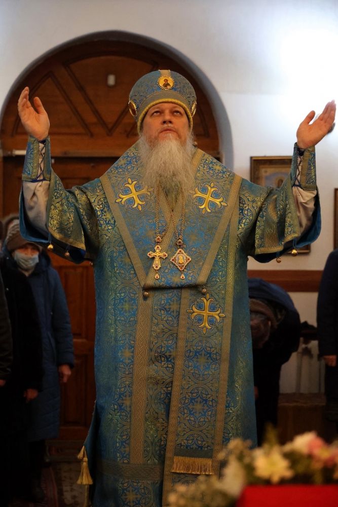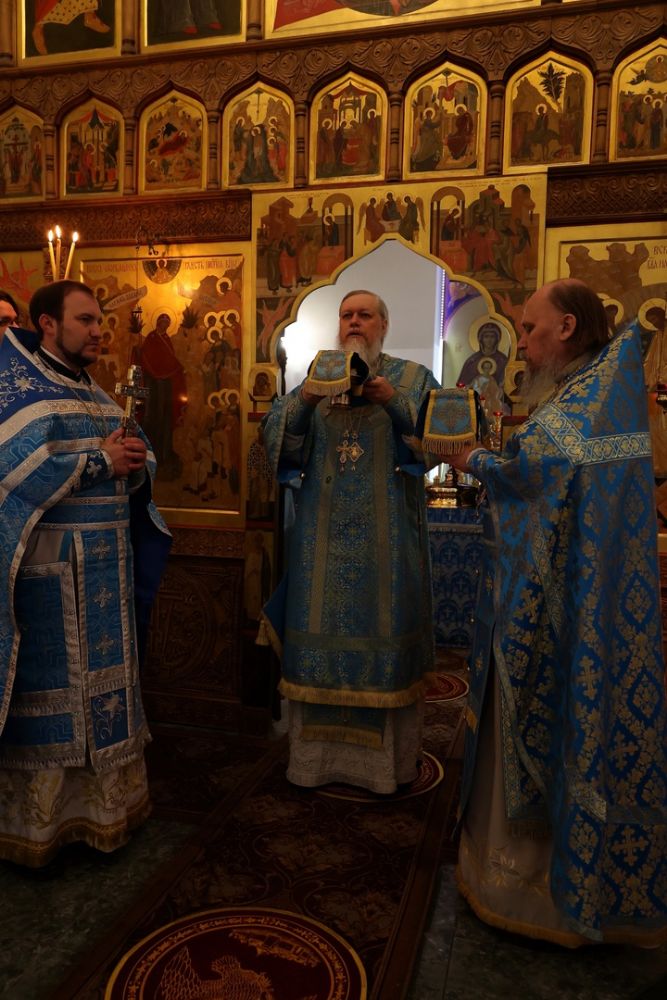 Владыке сослужили настоятель храма иконы Божией Матери «Всех скорбящих Радость» протоиерей Александр Михайлов, священники Иоанн Белинский и Виталий Ульянов, а также диакон Иоанн Захаров.