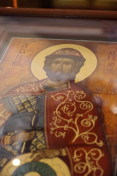 По заамвонной молитве архипастырь совершил славление и молитву святому благоверному князю Александру, защищавшему рубежи страны и православную веру на Руси (перед кончиной он принял монашество с именем Алексий).
