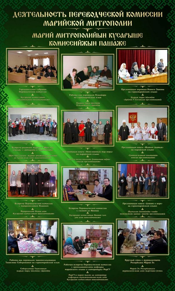 Просветительская деятельность Русской Православной Церкви в Марийском крае была возобновлена в конце 1990-х годов прошлого века. При Йошкар-Олинской епархии была создана Комиссия по переводу Священного Писания на марийский язык. За почти четверть века своей деятельности комиссией выпущены переводы Нового Завета, богослужебные книги, сборники акафистов, житийная литература, издается православный журнал, выпускаются радиопередачи на марийском языке. Партнерами епархии в ее просветительской деятельности стали Марийский государственный университет, МарНИИЯЛИ им. В.М. Васильева, учреждения культуры: музеи, дома культуры, библиотеки, образовательные учреждения и отдельные неравнодушные граждане.