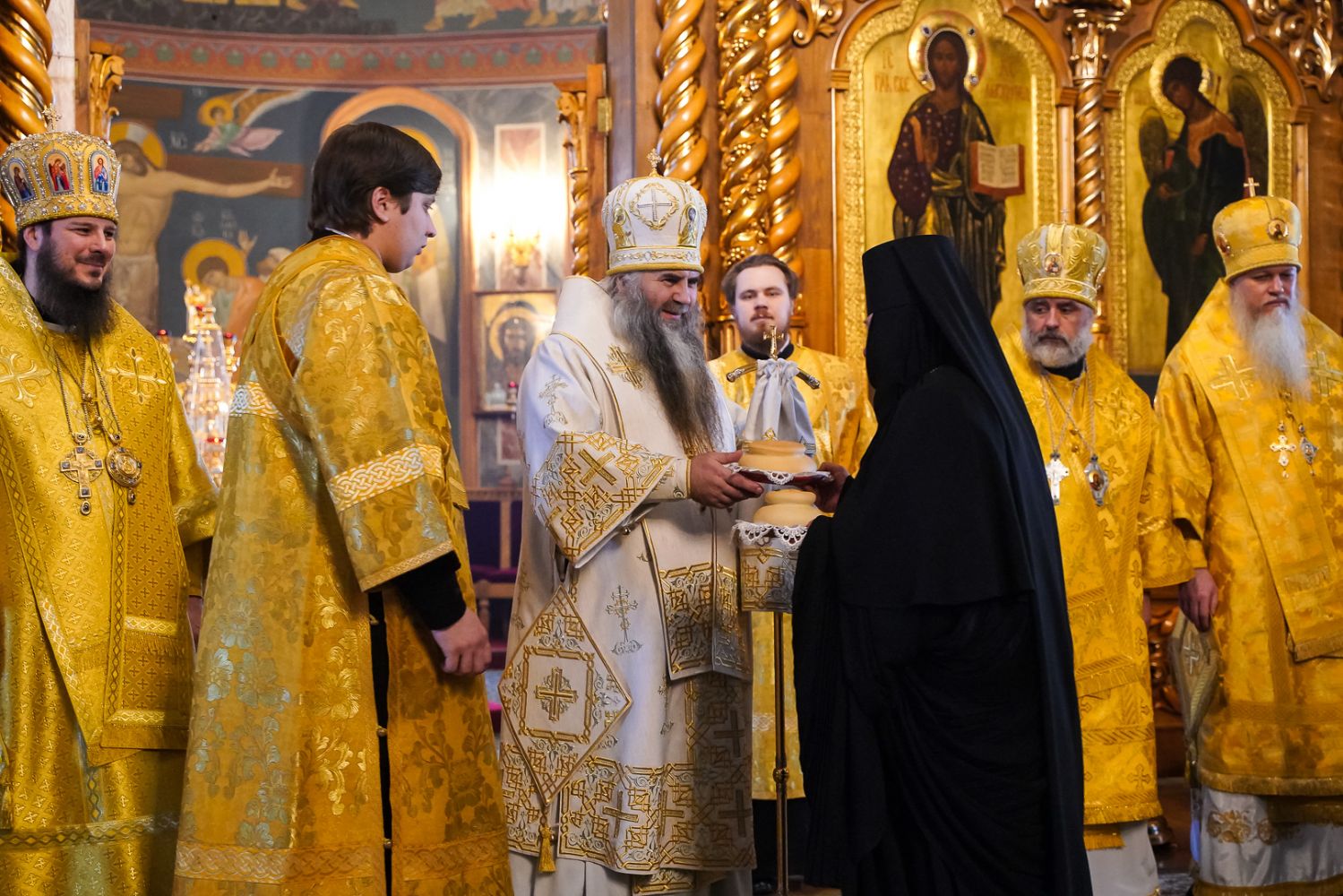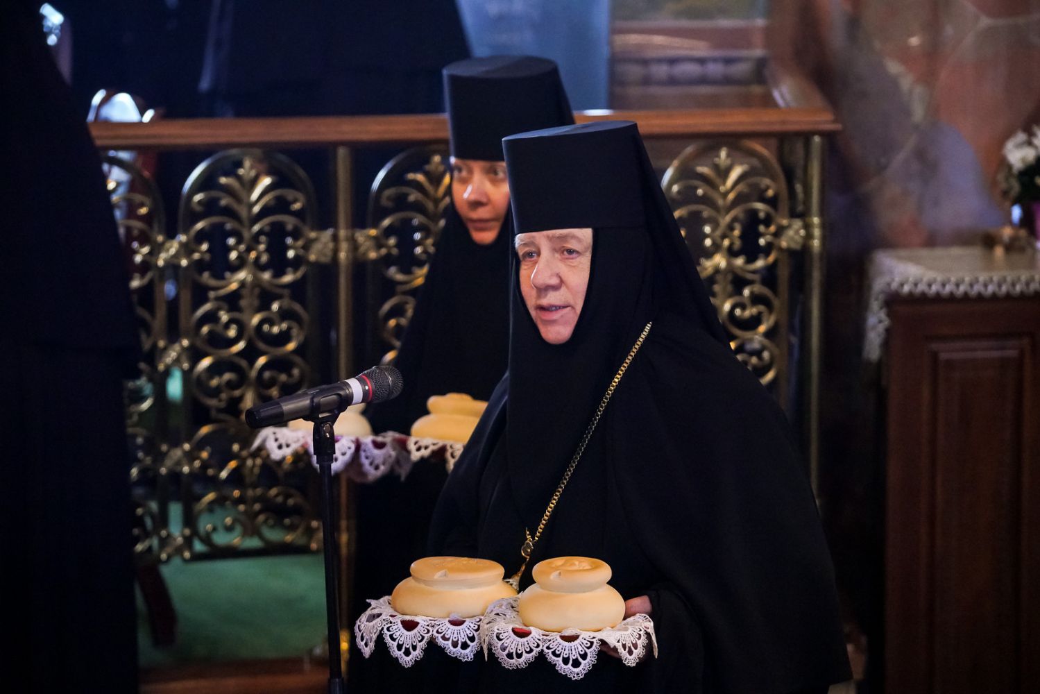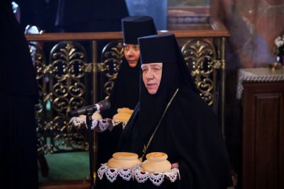 За богослужением вместе с паломниками и прихожанами молилась настоятельница монастыря игумения Сергия (Конкова) с сестрами обители, а также игумении монастырей Оренбургской епархии. Игумения Сергия поблагодарила архипастырей за молитвы перед мощами батюшки Серафима, совершенное богослужение и преподнесла им заздравные просфоры. «Пусть Господь молитвами Царицы Небесной, Начальницы этой обители, батюшки Серафима, всех дивеевских святых и ныне вспоминаемого апостола Андрея Первозванного укрепляет в несении ваших архипастырских трудов на многая и благая лета», – сказала настоятельница.