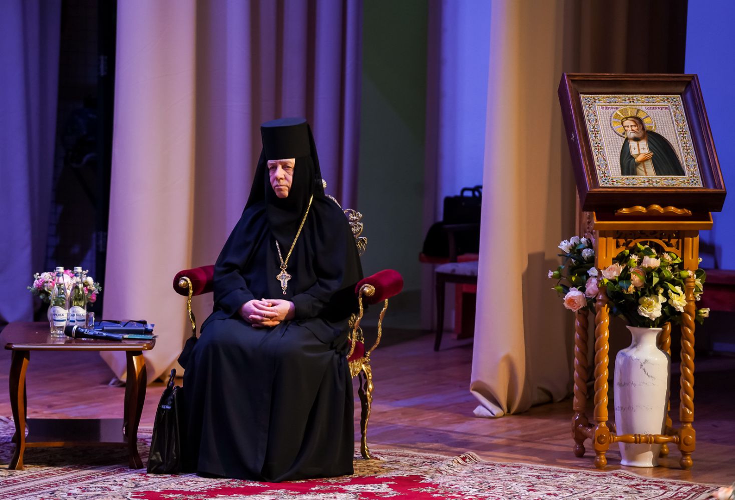 Работу круглого стола возглавил митрополит Нижегородский и Арзамасский Георгий. В президиуме встречи находились митрополит Йошкар-Олинский и Марийский Иоанн, митрополит Пензенский и Нижнеломовский Серафим, настоятельница Свято-Троицкого Серафимо-Дивеевского монастыря игумения Сергия (Конкова).