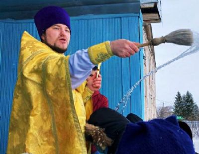 После Литургии прошел крестный ход вокруг храма со чтением Евангелия и кроплением святой водой.