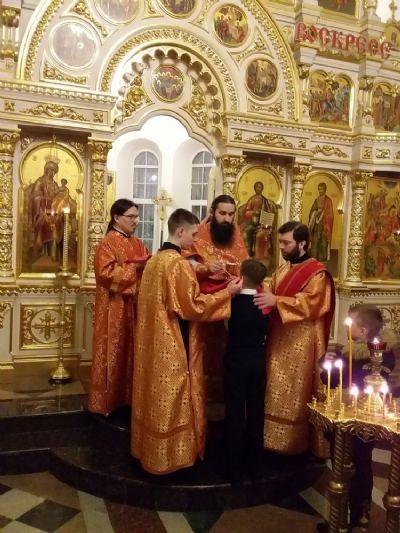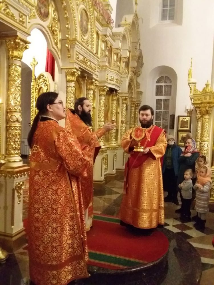 В храме Рождества Христова Божественную литургию совершил иерей Никита Смирнов в сослужении диаконов Артемия Бобоча и Димитрия Кудряшова. После Литургии настоятель храма иерей Александр Лоскутов совершил водосвятный молебен святому мученику Вонифатию, которому молятся об избавлении от недугов винопития и наркомании.