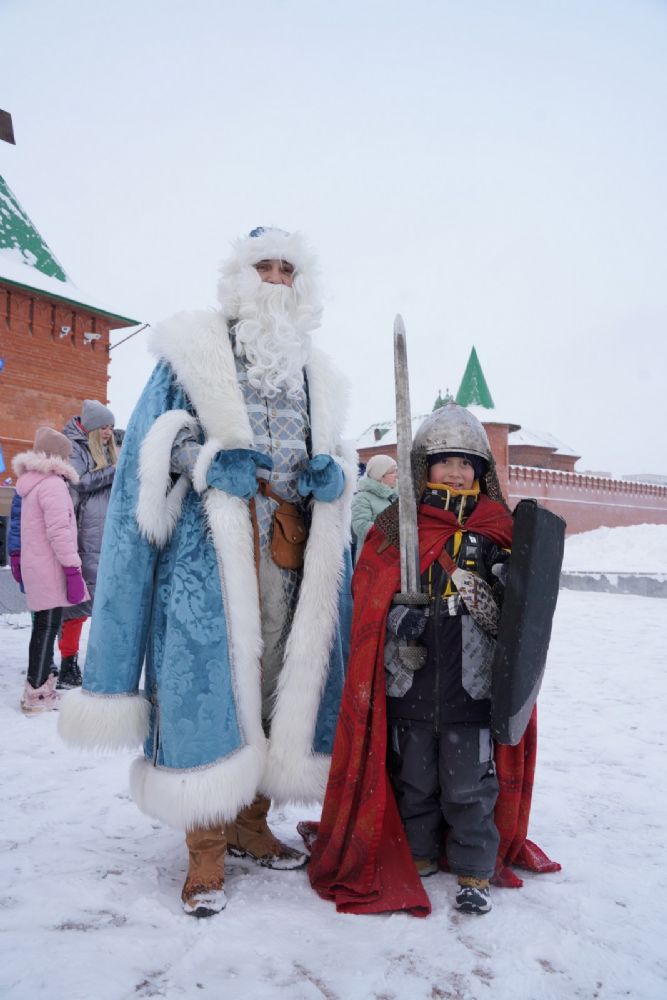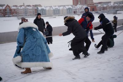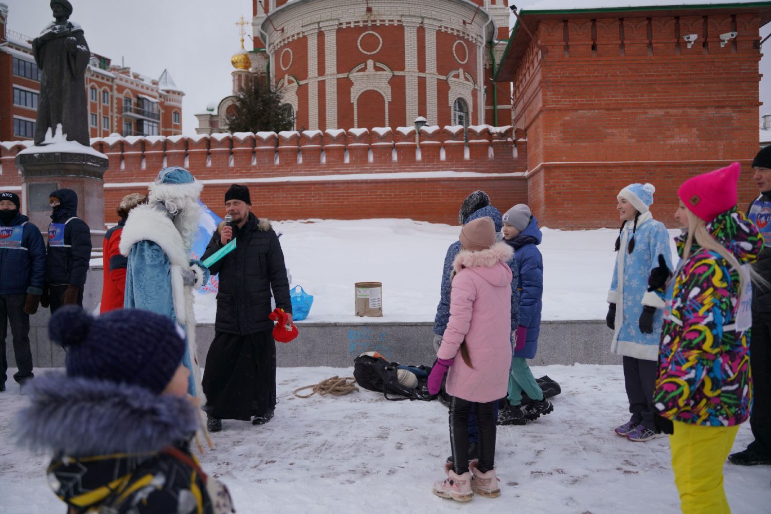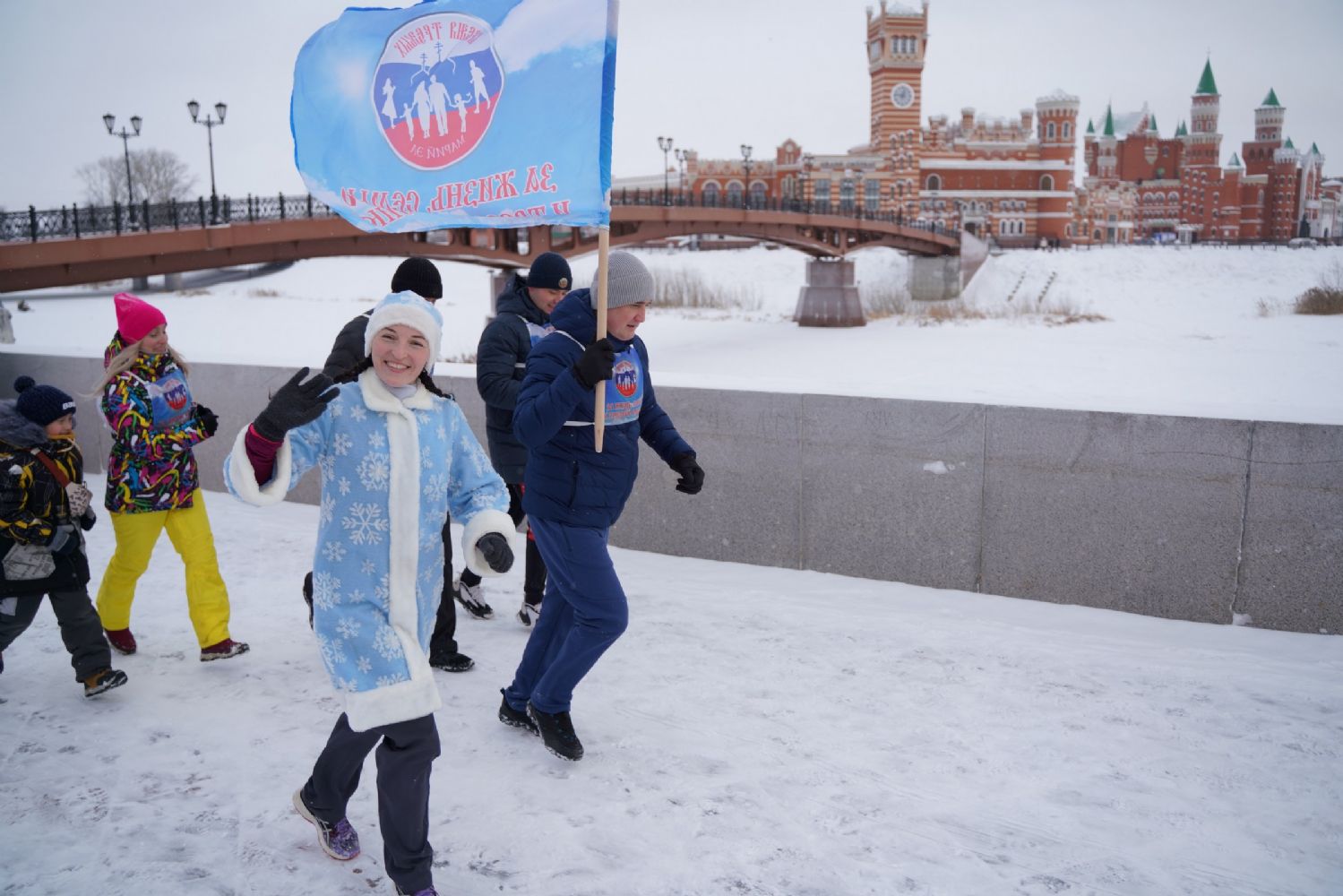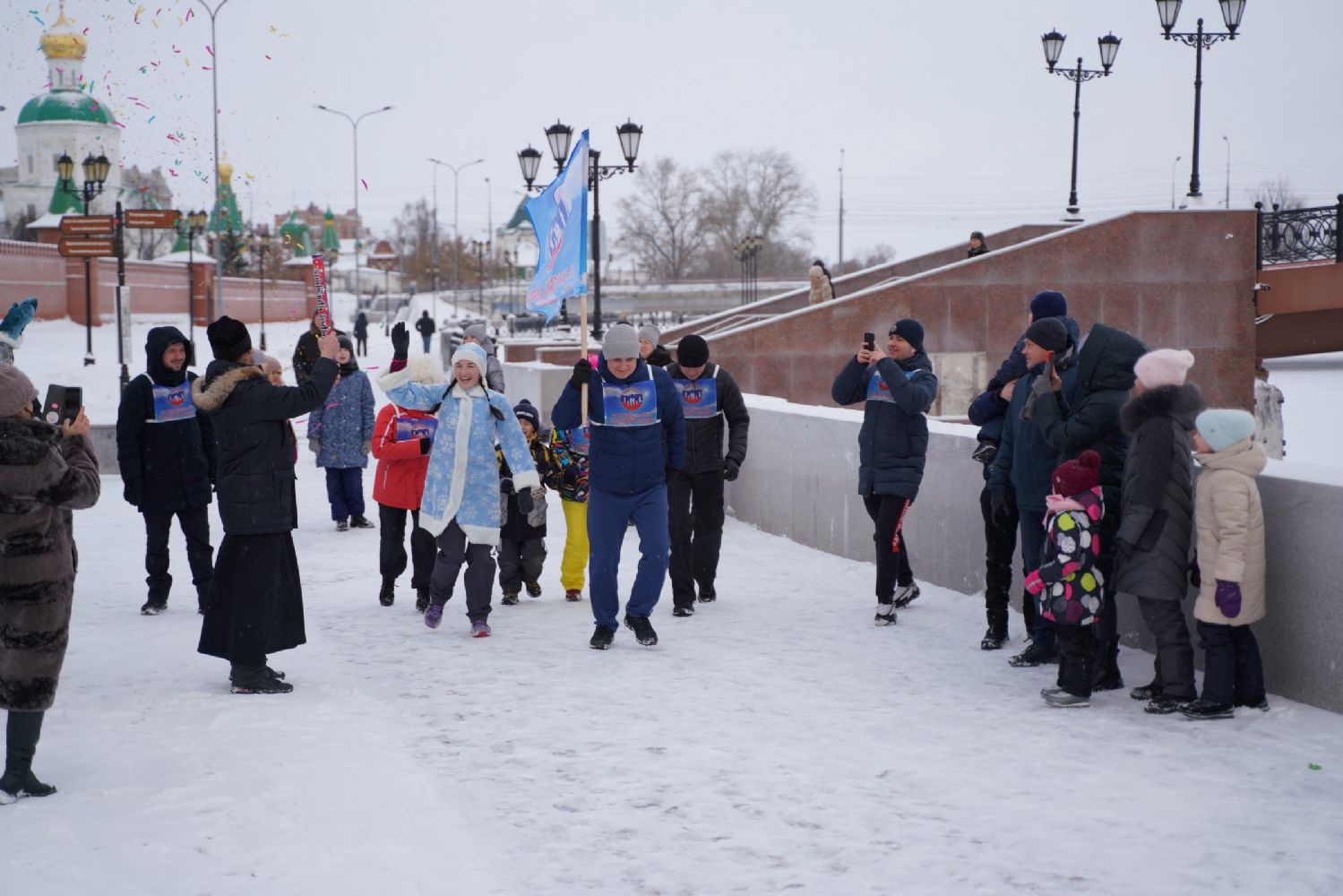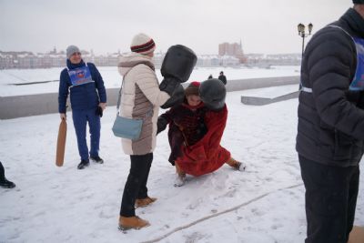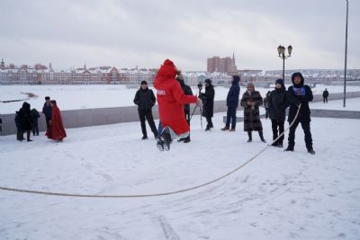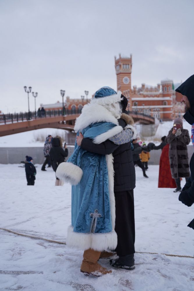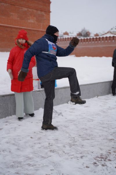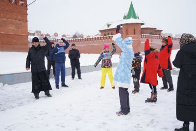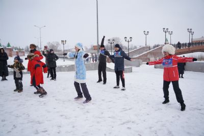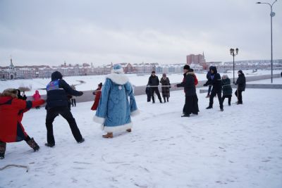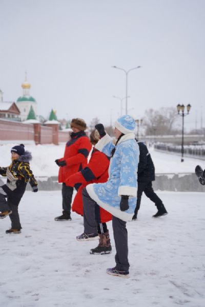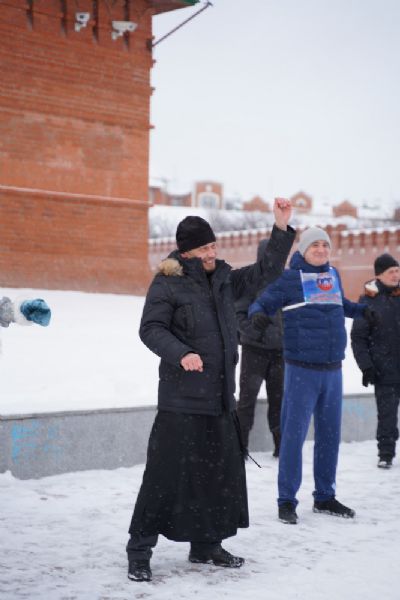 После полудня православные активисты совершили забег по набережной города с соблюдением санитарных норм на открытом воздухе. Пробежке предшествовала разминка во главе с Дедом Морозом и Снегурочкой. Витязи с Шукшанской богатырской заставы организовали для всех желающих богатырские забавы - бои в мягких доспехах, прыжки через веревку, перетягивание каната...