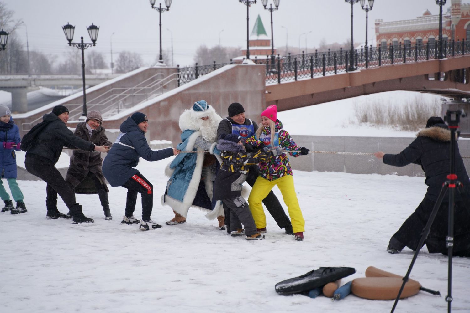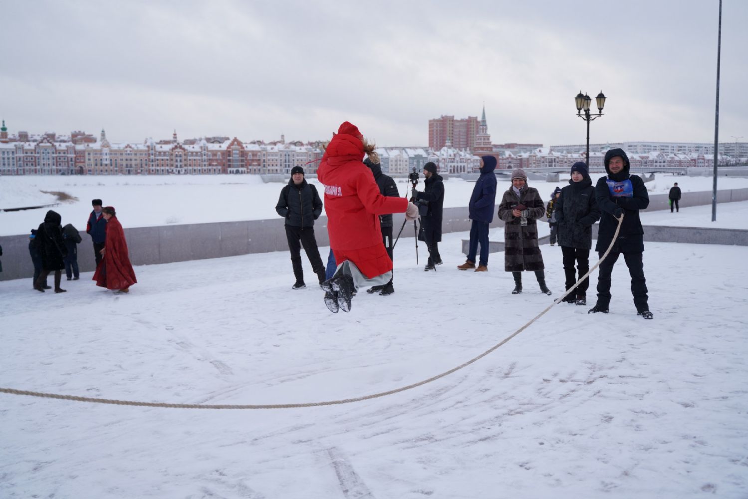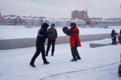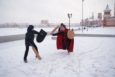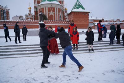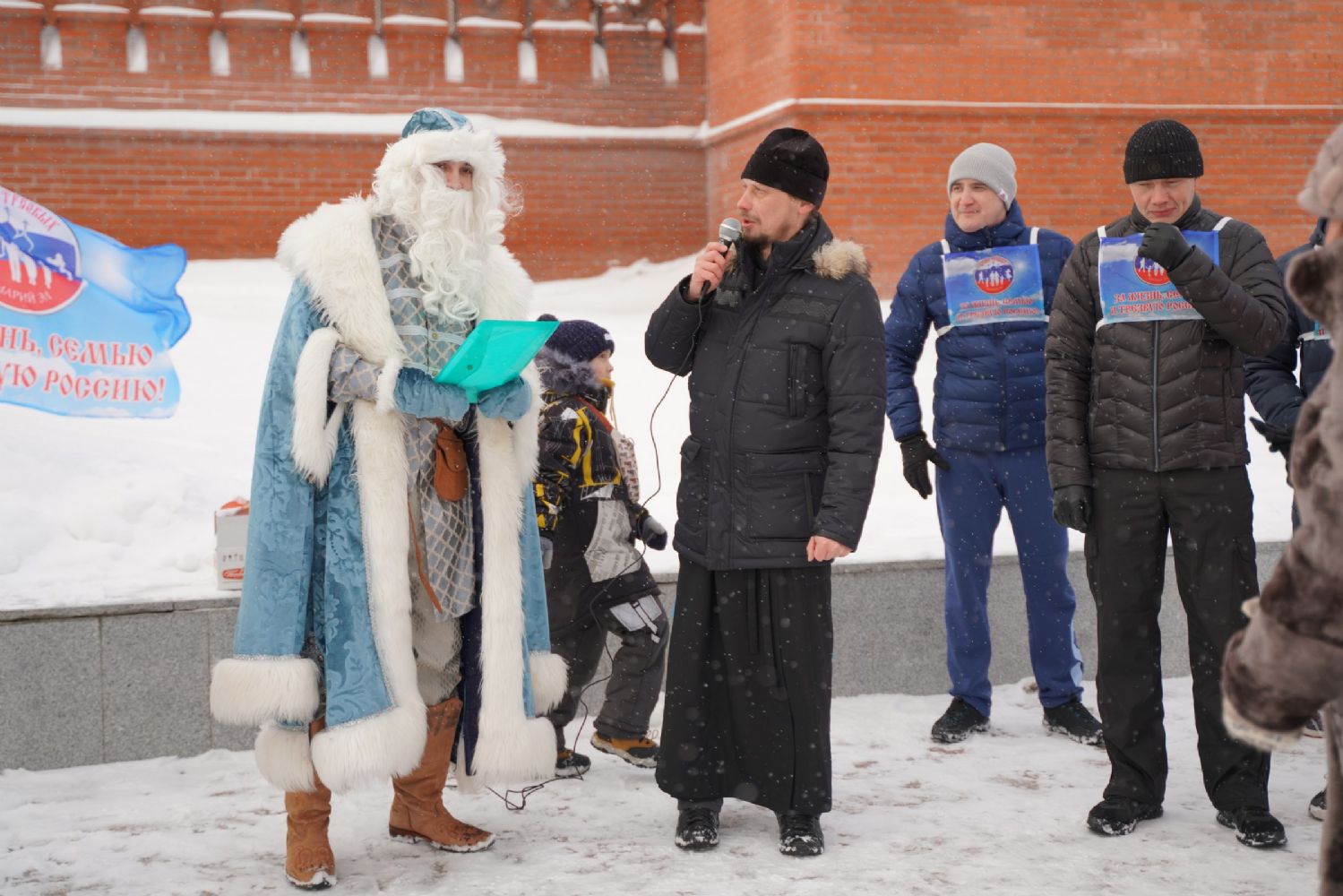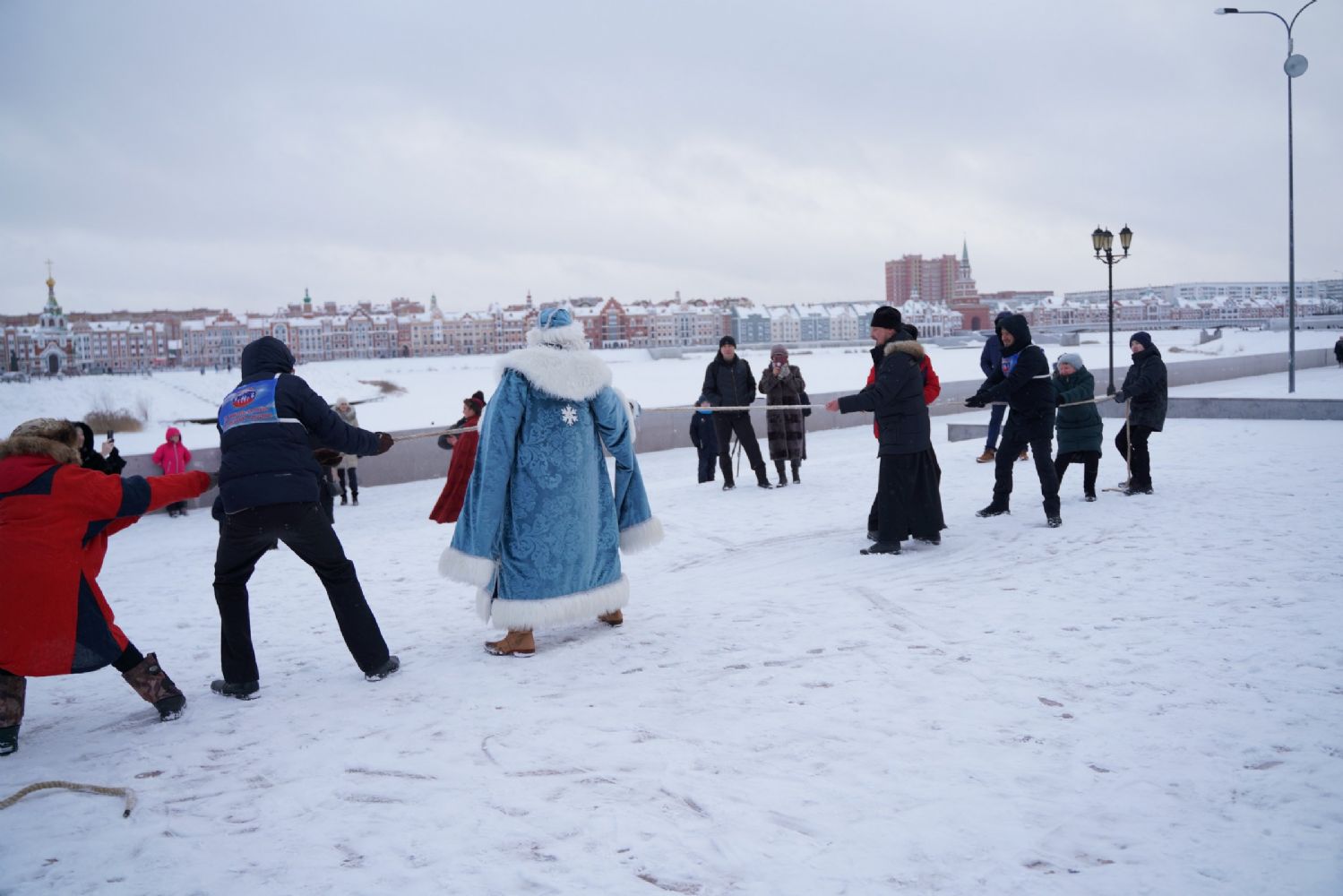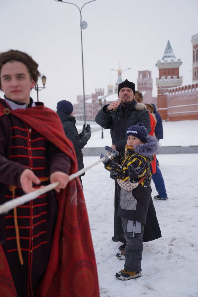 После полудня православные активисты совершили забег по набережной города с соблюдением санитарных норм на открытом воздухе. Пробежке предшествовала разминка во главе с Дедом Морозом и Снегурочкой. Витязи с Шукшанской богатырской заставы организовали для всех желающих богатырские забавы - бои в мягких доспехах, прыжки через веревку, перетягивание каната...