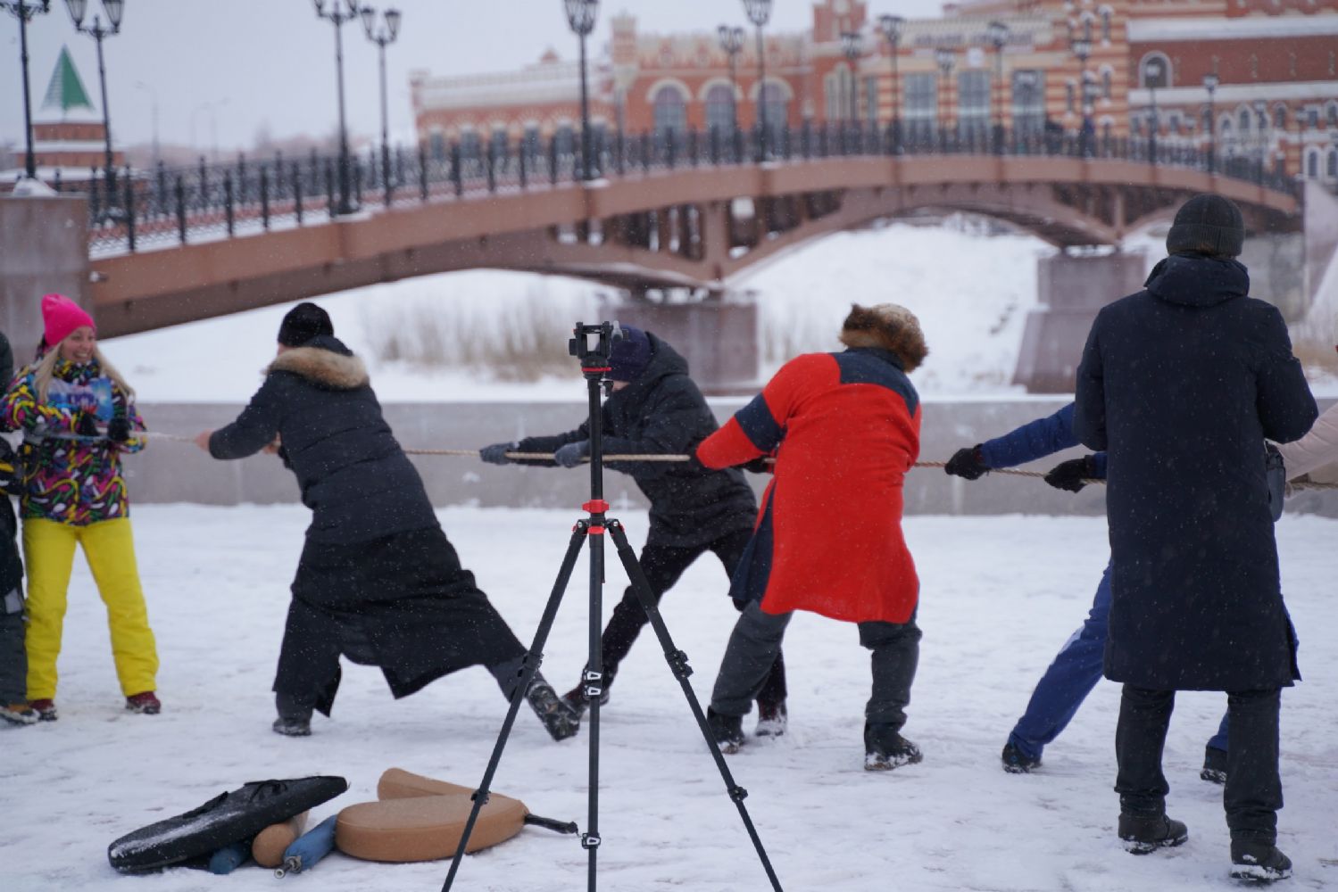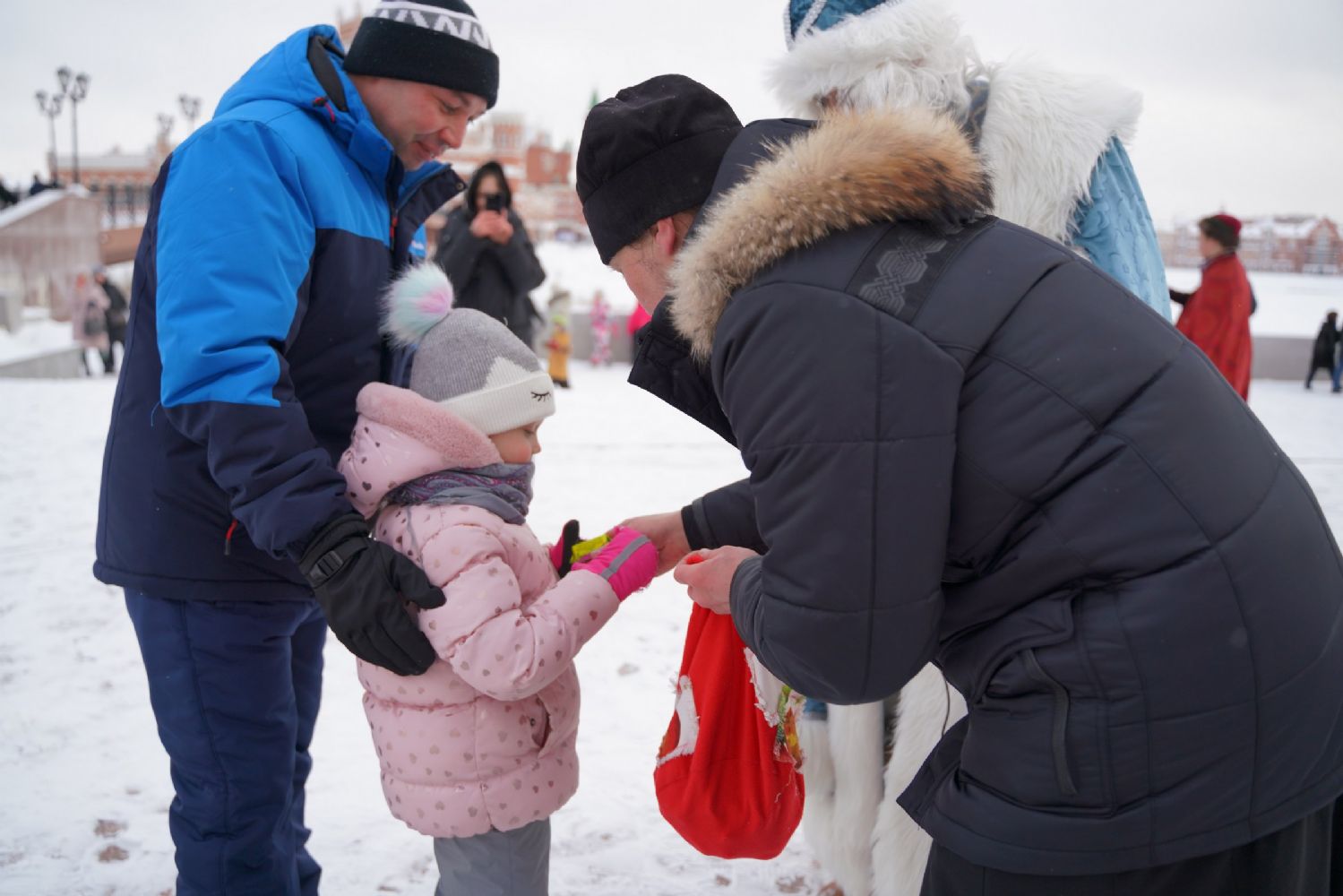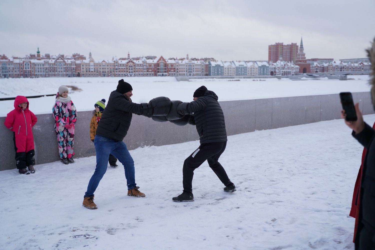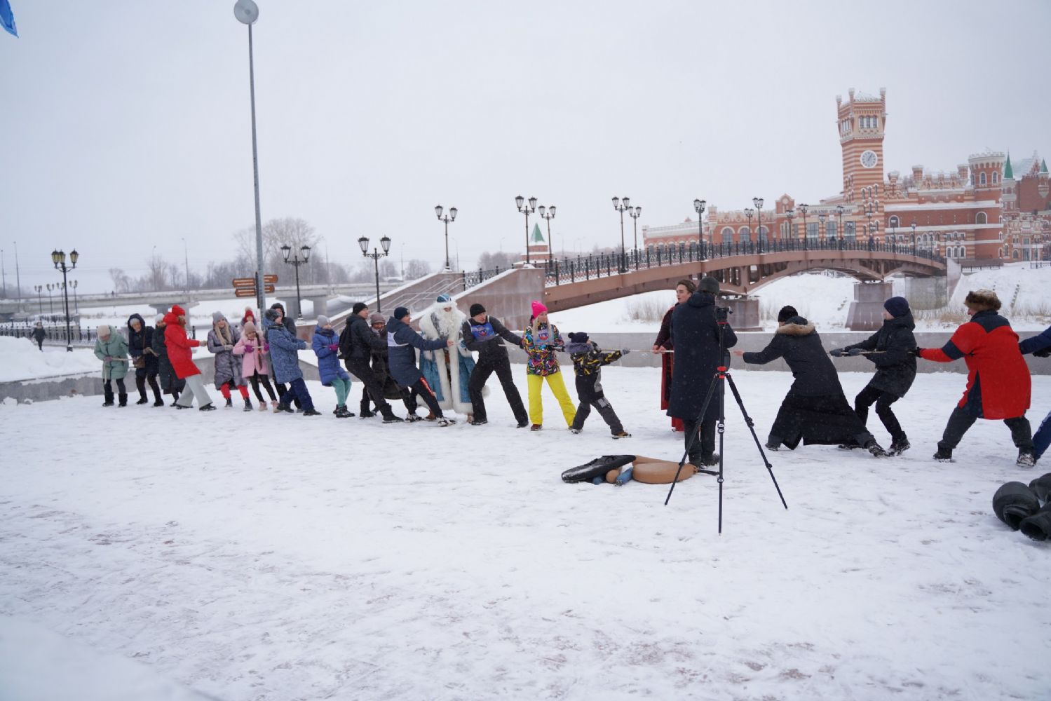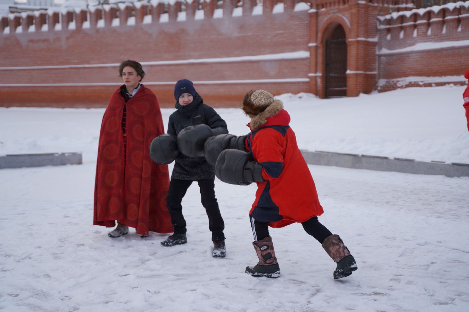 После полудня православные активисты совершили забег по набережной города с соблюдением санитарных норм на открытом воздухе. Пробежке предшествовала разминка во главе с Дедом Морозом и Снегурочкой. Витязи с Шукшанской богатырской заставы организовали для всех желающих богатырские забавы - бои в мягких доспехах, прыжки через веревку, перетягивание каната...