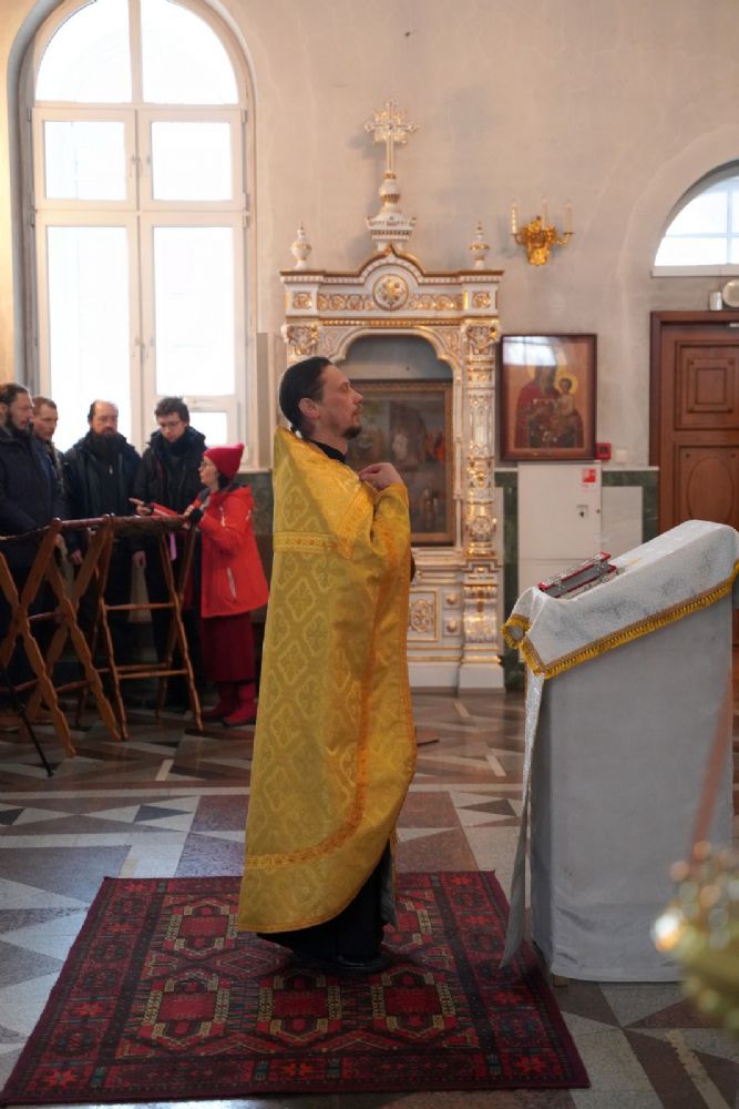 Далее руководитель Общества трезвости иерей Андрей Кочаков совершил в Воскресенском соборе молебен на новолетие. Песнопения исполнял хор Общества трезвости под управлением регента Регины Федосеевой. Всем собравшимся отец Андрей пожелал провести новый год радостно, с пользой для души и с Божиим благословением. И напомнил, что новогодние каникулы нам даны, чтобы достойно подготовиться к главному зимнему празднику - Рождеству Христову.