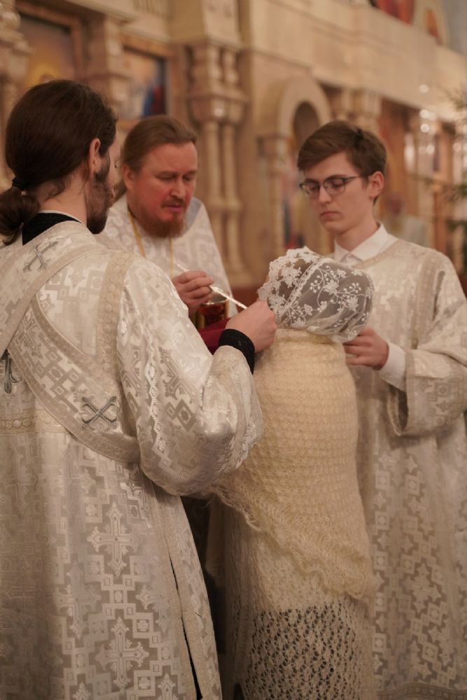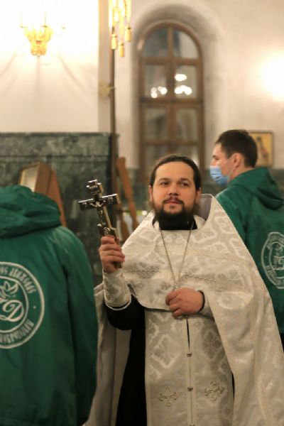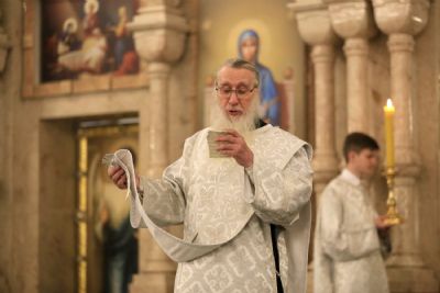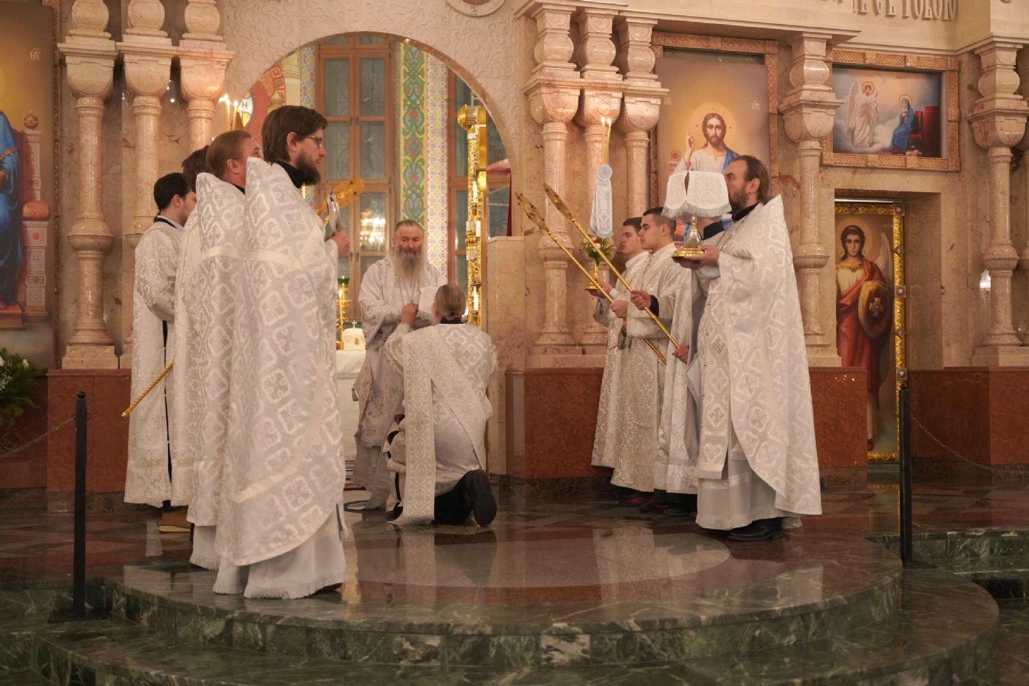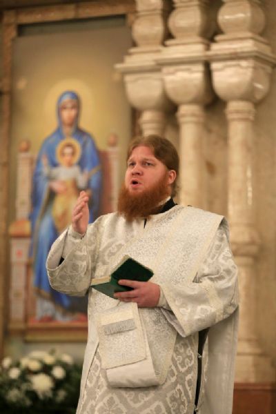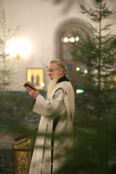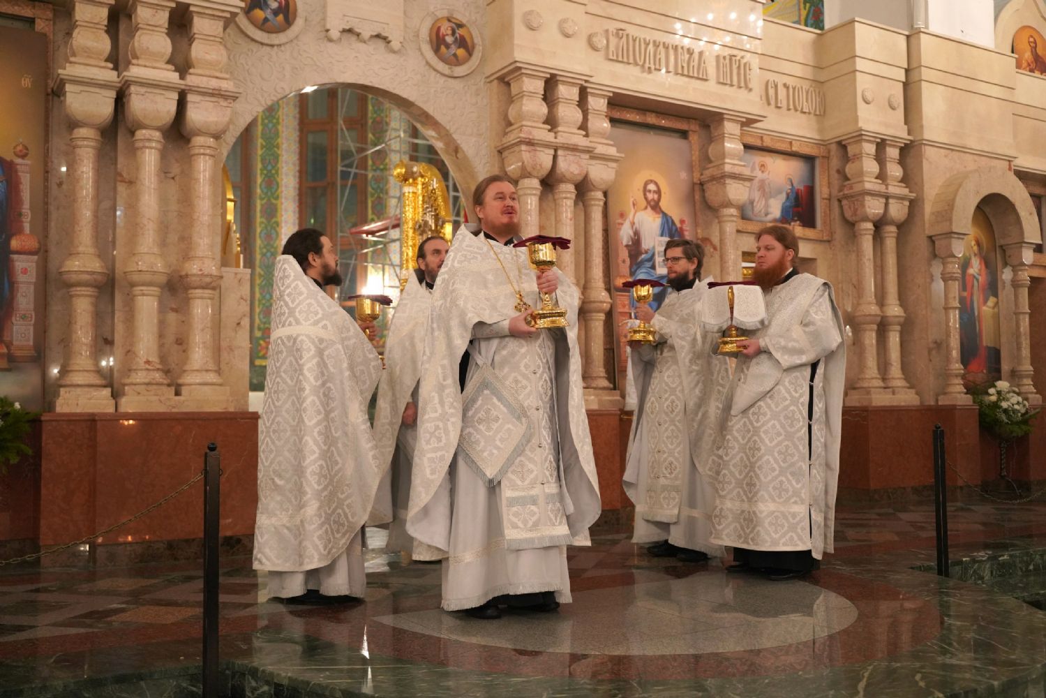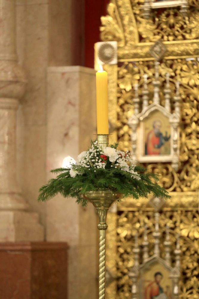 По запричастном стихе клирик кафедрального собора иерей Евгений Самойлов зачитал Рождественское послание Патриарха Московского и всея Руси Кирилла верным чадам Русской Православной Церкви.