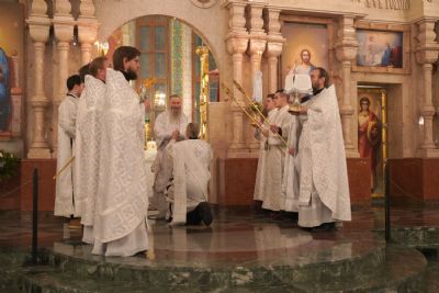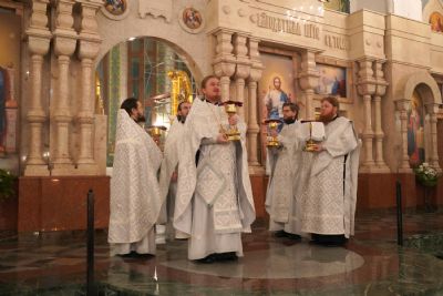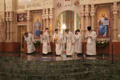 Владыке сослужили секретарь Йошкар-Олинского епархиального управления иеромонах Серафим (Пасанаев), ключарь собора протоиерей Сергий Поглазов, клирики собора и протодиакон Михаил Козловский. Песнопения исполнял детско-юношеский хор «Благовест» под руководством регента Татьяны Черновой.