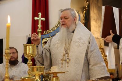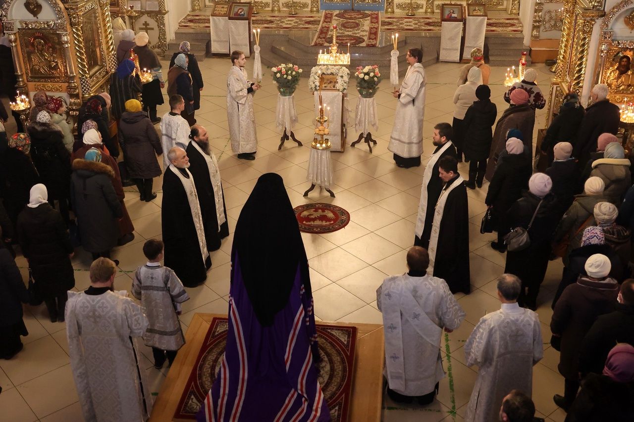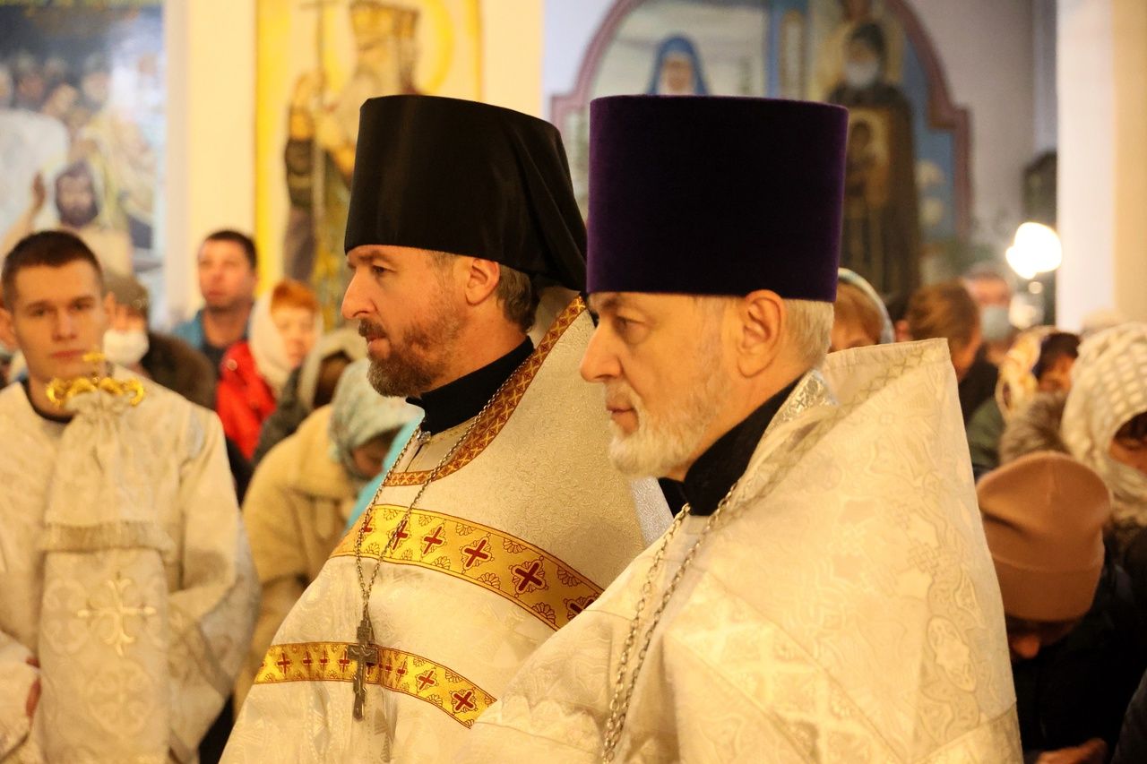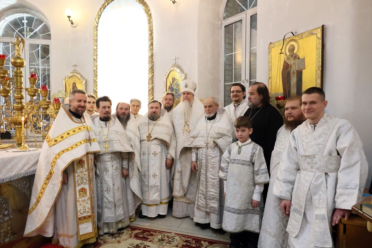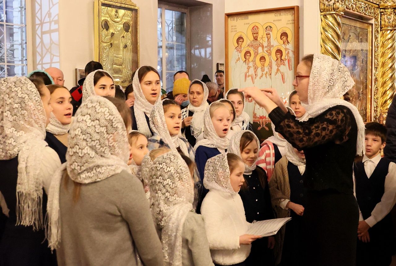 Владыке сослужили клирики собора, песнопения исполнял архиерейский хор под управлением Тимофея Протасова. За Литургией пел также детско-юношеский хор под руководством регента Марии Захаровой.