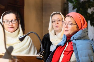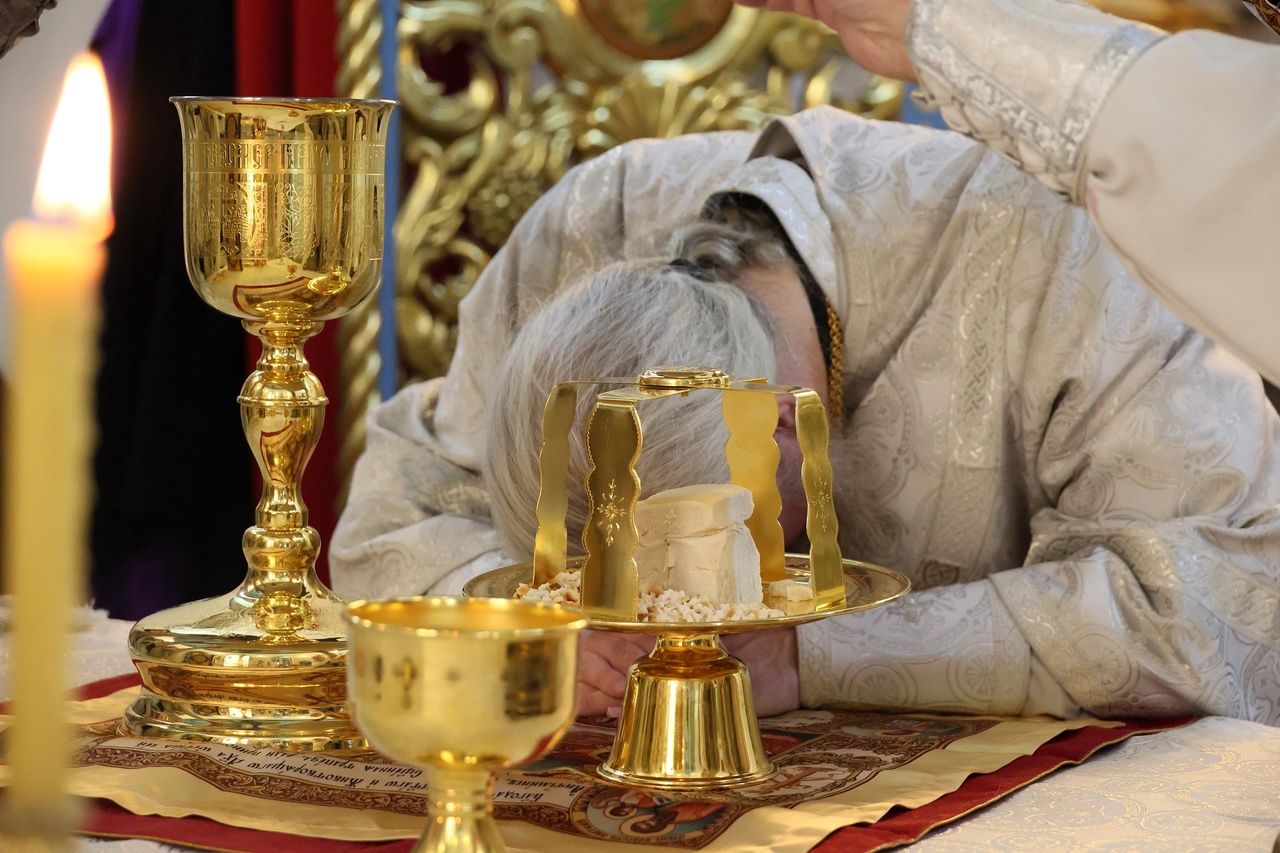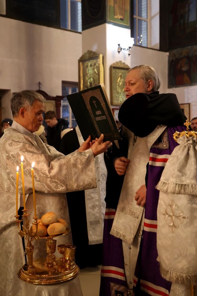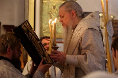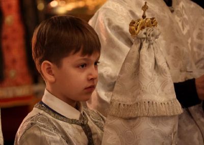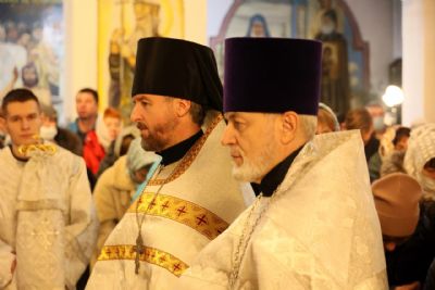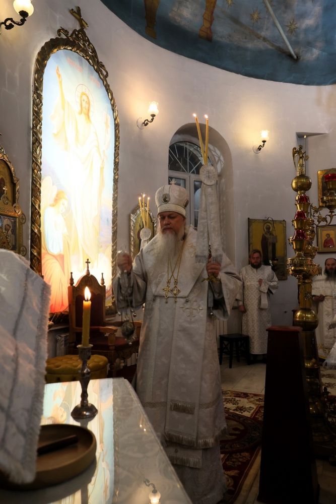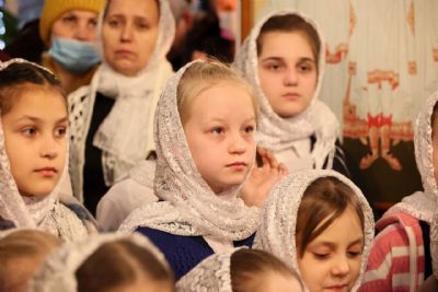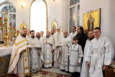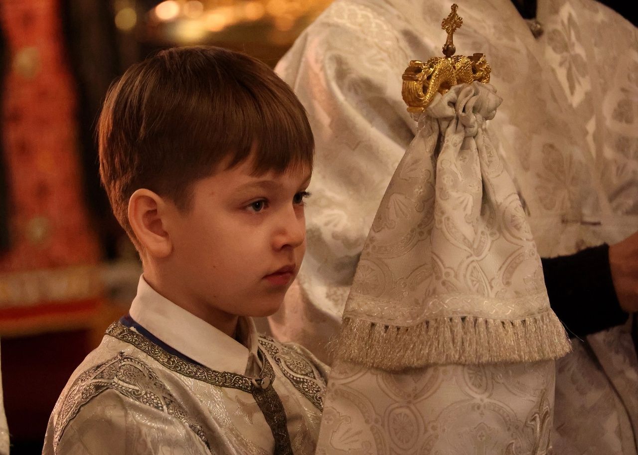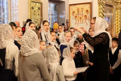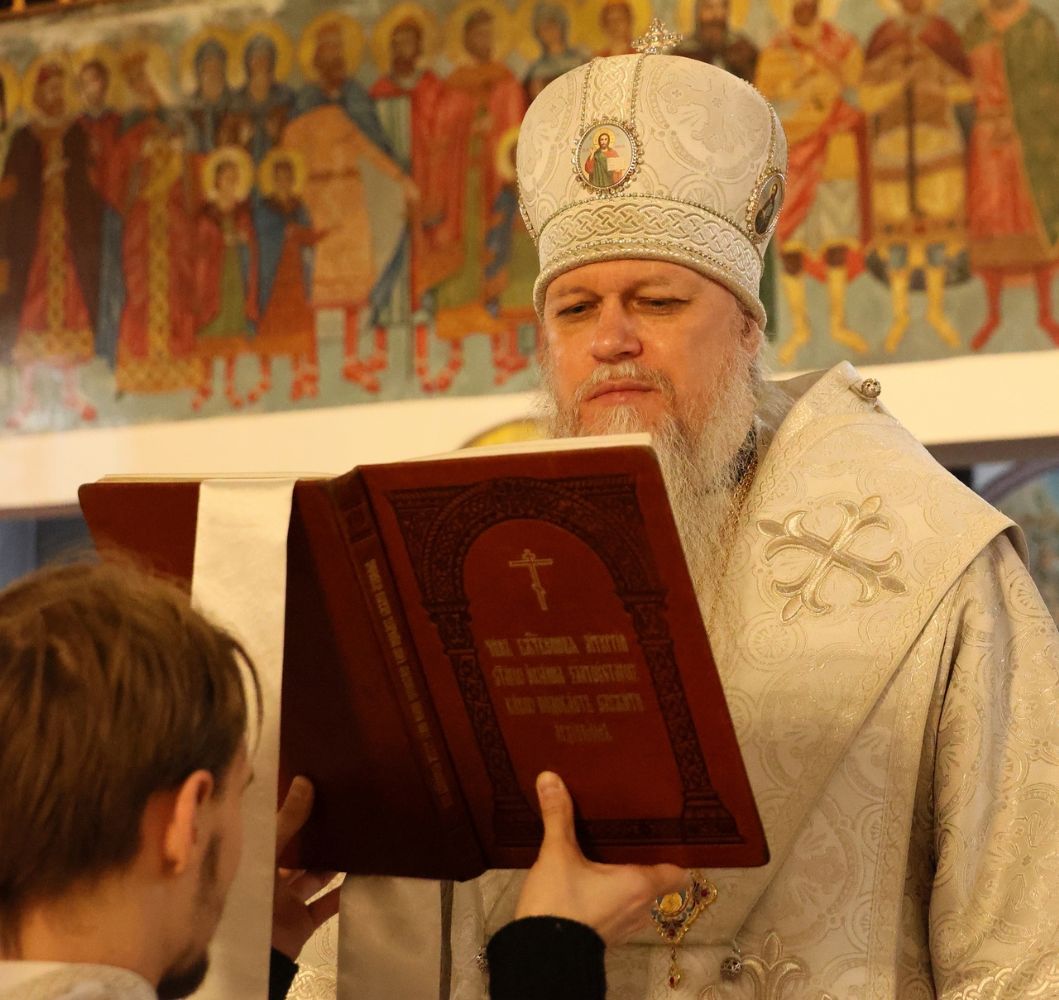 Владыке сослужили клирики собора, песнопения исполнял архиерейский хор под управлением Тимофея Протасова. За Литургией пел также детско-юношеский хор под руководством регента Марии Захаровой.