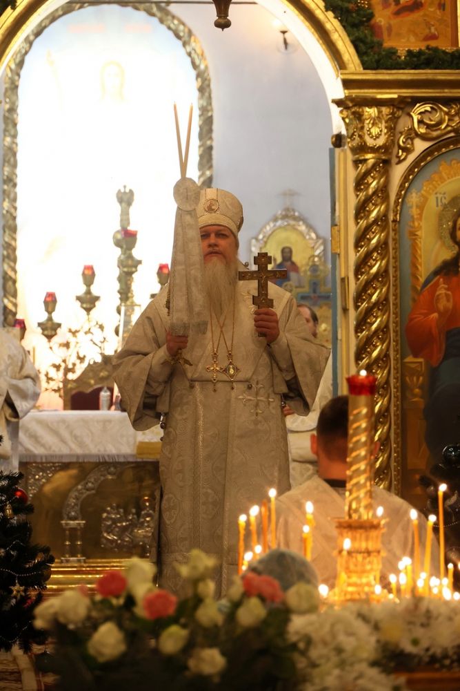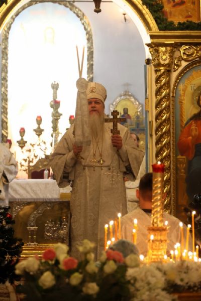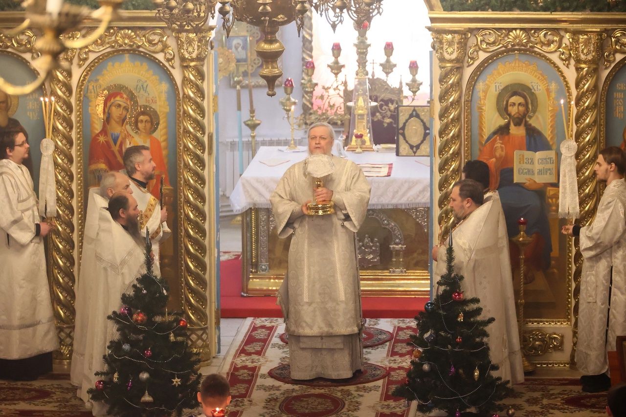 По окончании Литургии глава епархии огласил Рождественское послание Святейшего Патриарха Московского и всея Руси Кирилла, затем обратился к прихожанам с проповедью: