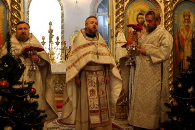 В праздник Рождества Христова, в ночь 7 января, епископ Волжский и Сернурский Феофан совершил Божественную литургию в Никольском кафедральном соборе г. Волжска. Накануне владыка возглавил здесь же праздничное всенощное бдение.