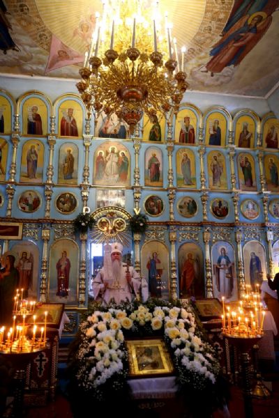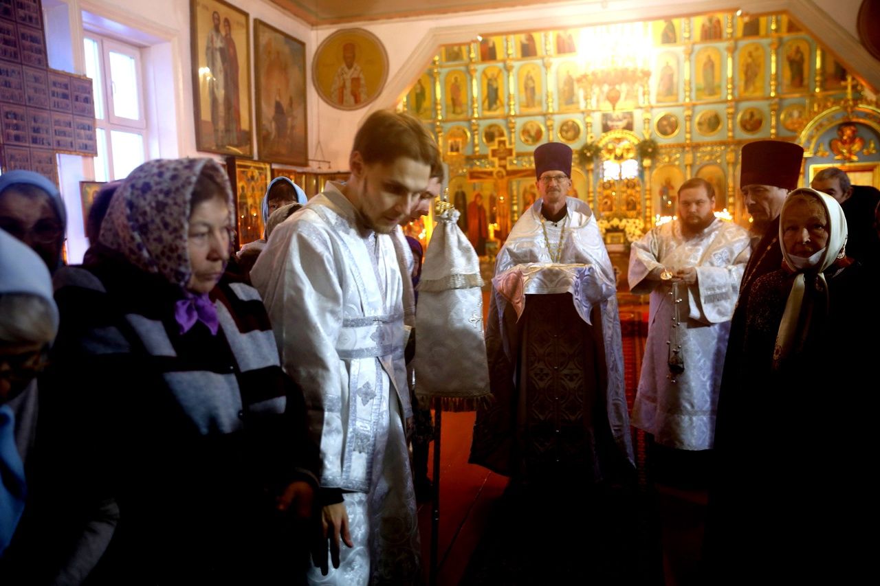 Владыке сослужили настоятель Покровского храма протоиерей Евгений Усков и клирики Никольского кафедрального собора иерей Александр Усков и диакон Иоанн Захаров. Песнопения исполнял малый состав архиерейского хора под управлением Тимофея Протасова.