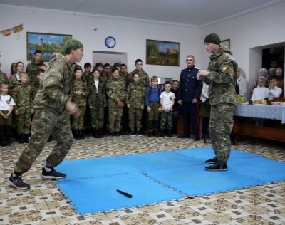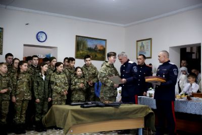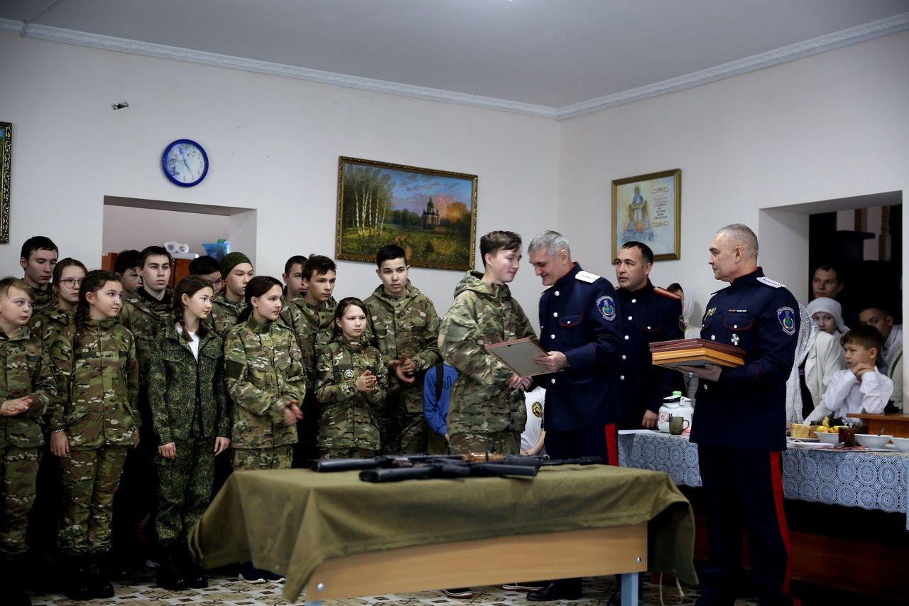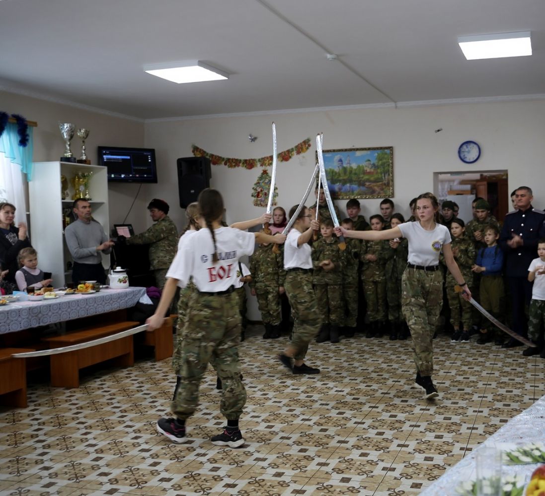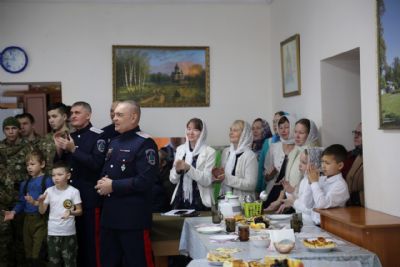 Воспитанники клуба представили в трапезной храма праздничную программу. Они продемонстрировали умение в боевых дисциплинах, владении оружием, которое ребята оттачивают на протяжении пяти лет под руководством своего наставника, походного атамана хорунжего Александра Глухова. В музыкальной части программы прозвучали стихи и песни, в том числе собственного сочинения.