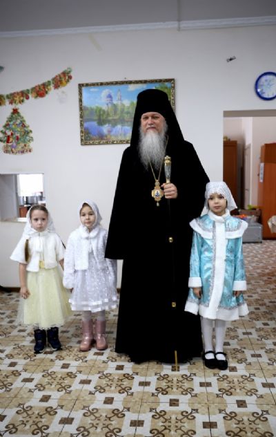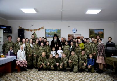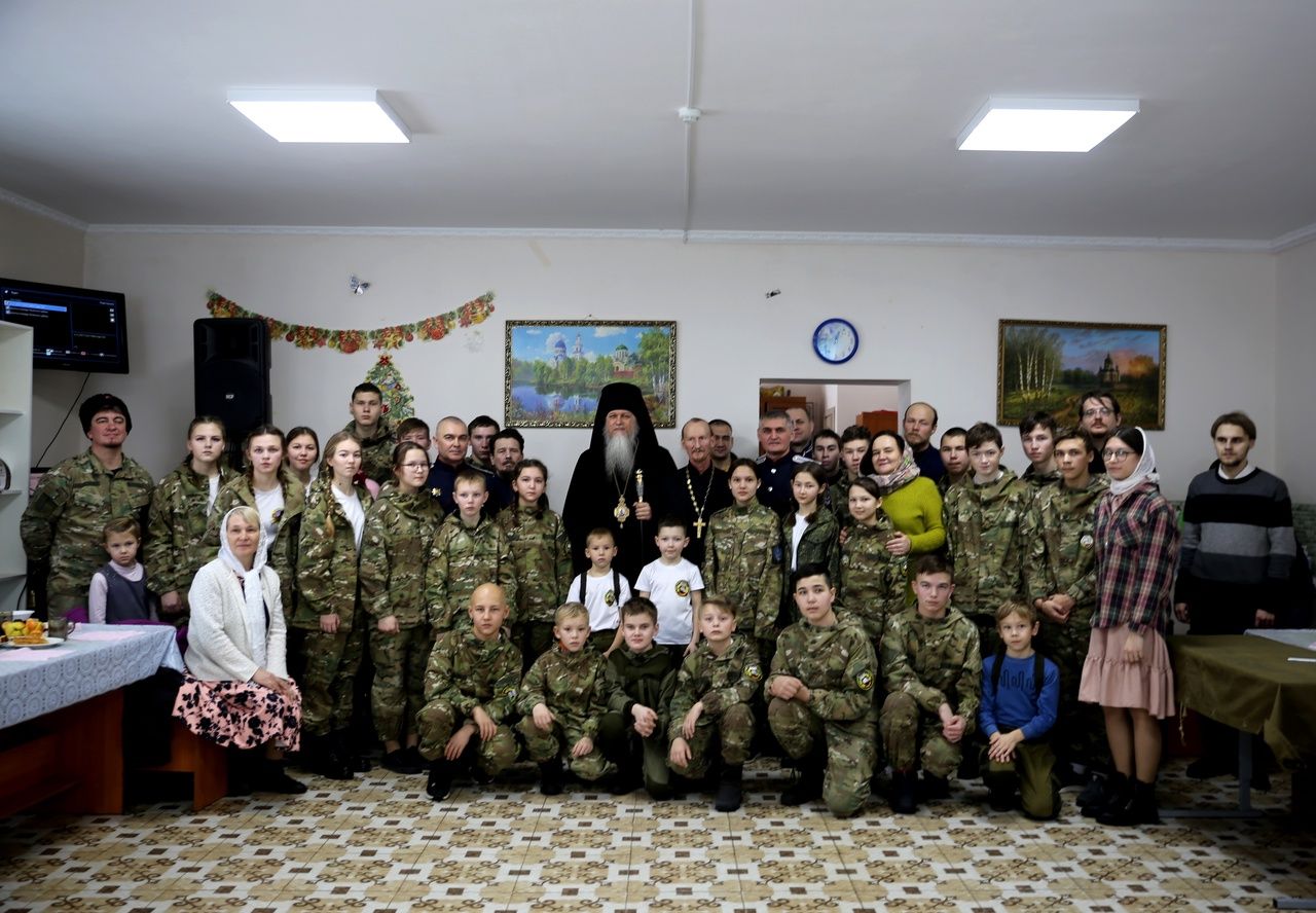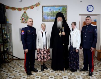 После Божественной литургии епископ Феофан поздравил кадетов Казачьего военно-патриотического клуба «Клинок» хутора «Покровский» с. Эмеково с праздником Рождества Христова и с пятилетней датой со дня образования.
