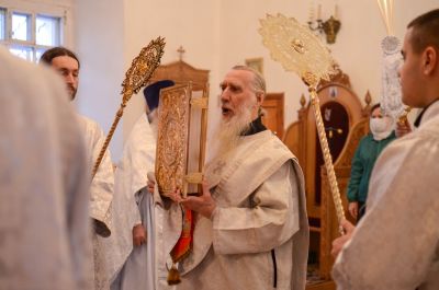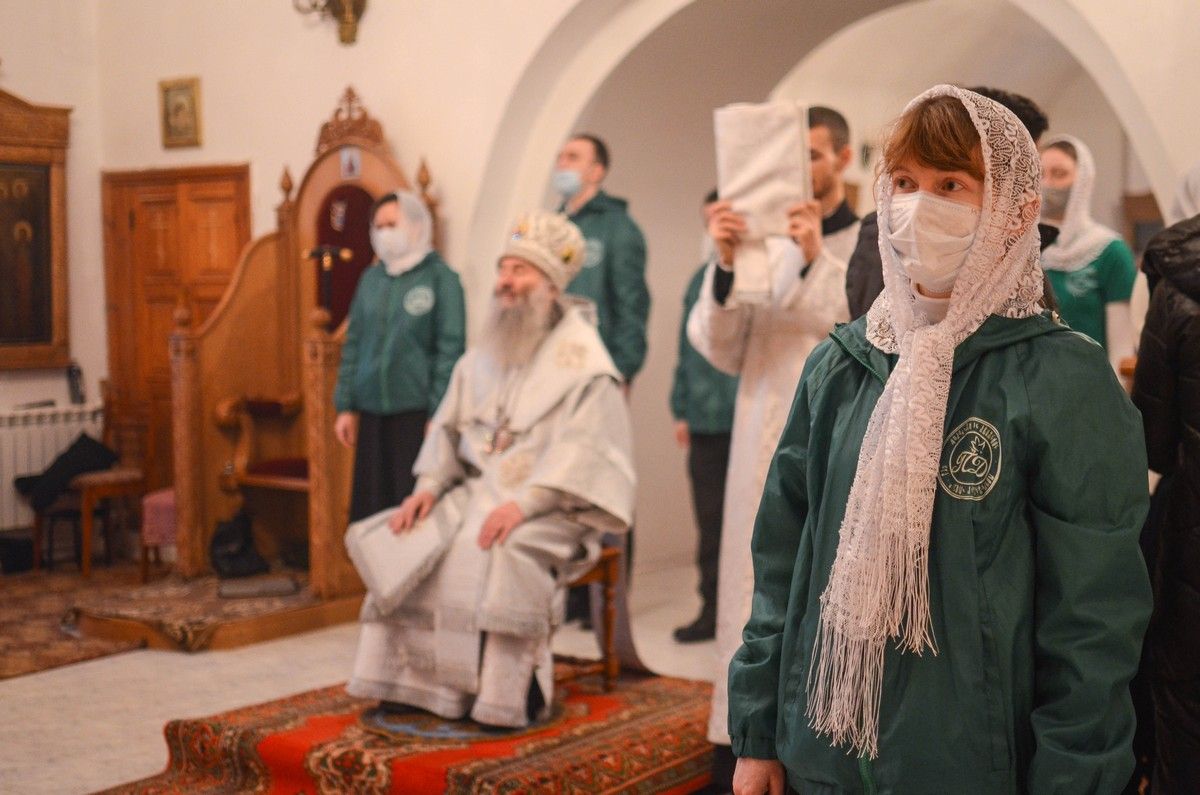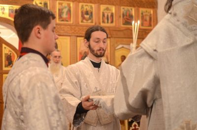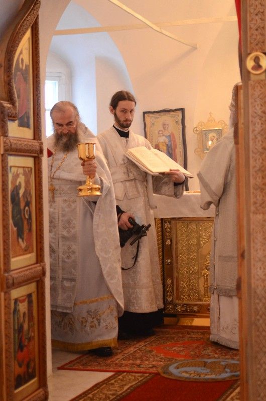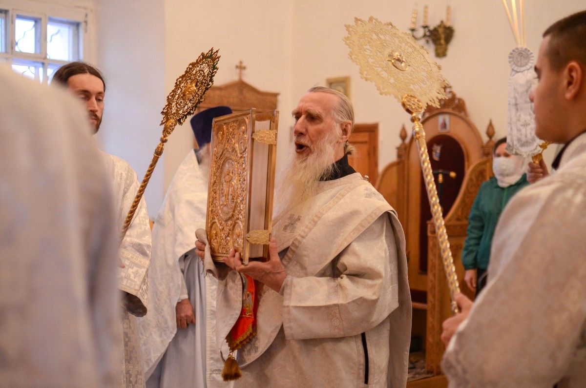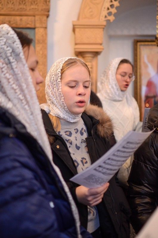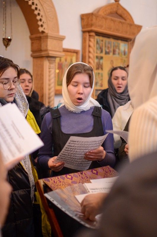 Владыке сослужили клирик монастыря иерей Михаил Лежнин и протодиакон Михаил Козловский. Песнопения исполнял детско-юношеский хор «Благовест» под руководством регента Татьяны Черновой.