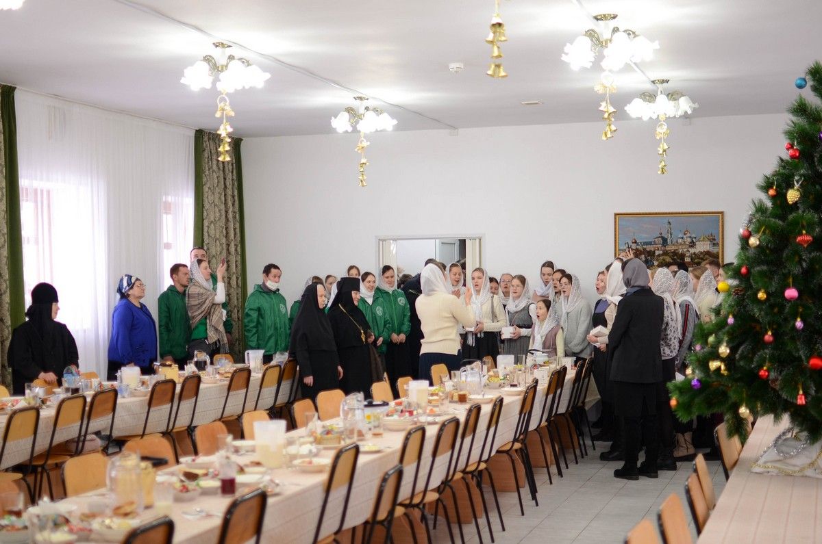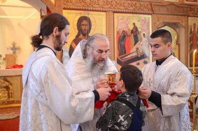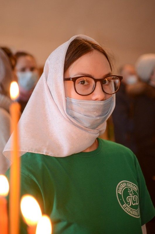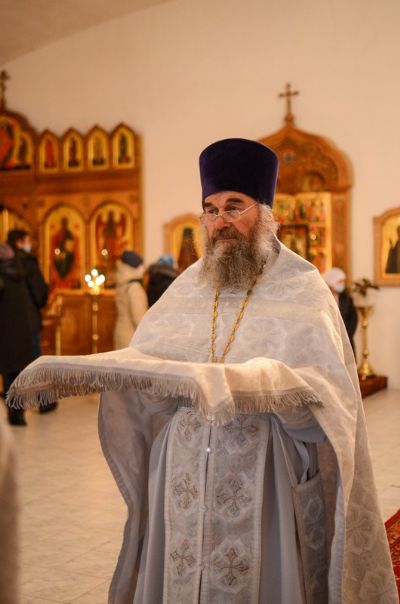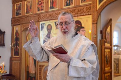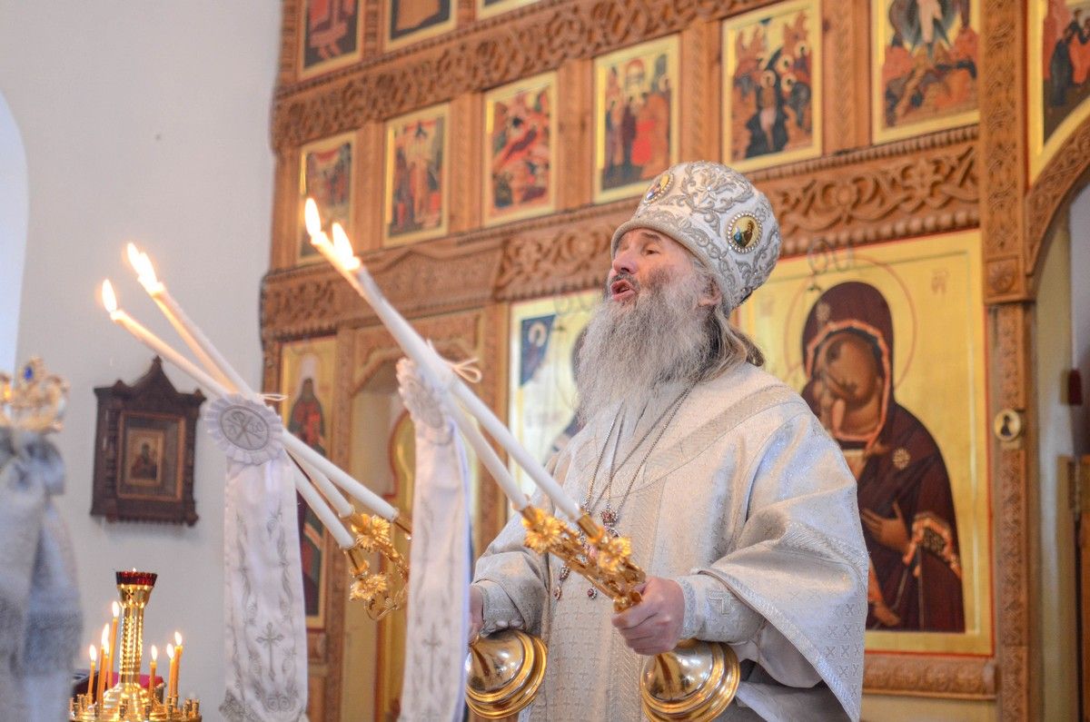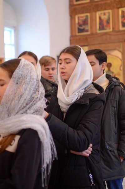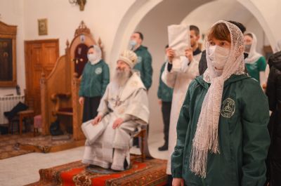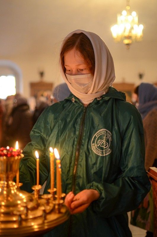 Владыке сослужили клирик монастыря иерей Михаил Лежнин и протодиакон Михаил Козловский. Песнопения исполнял детско-юношеский хор «Благовест» под руководством регента Татьяны Черновой.