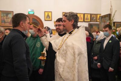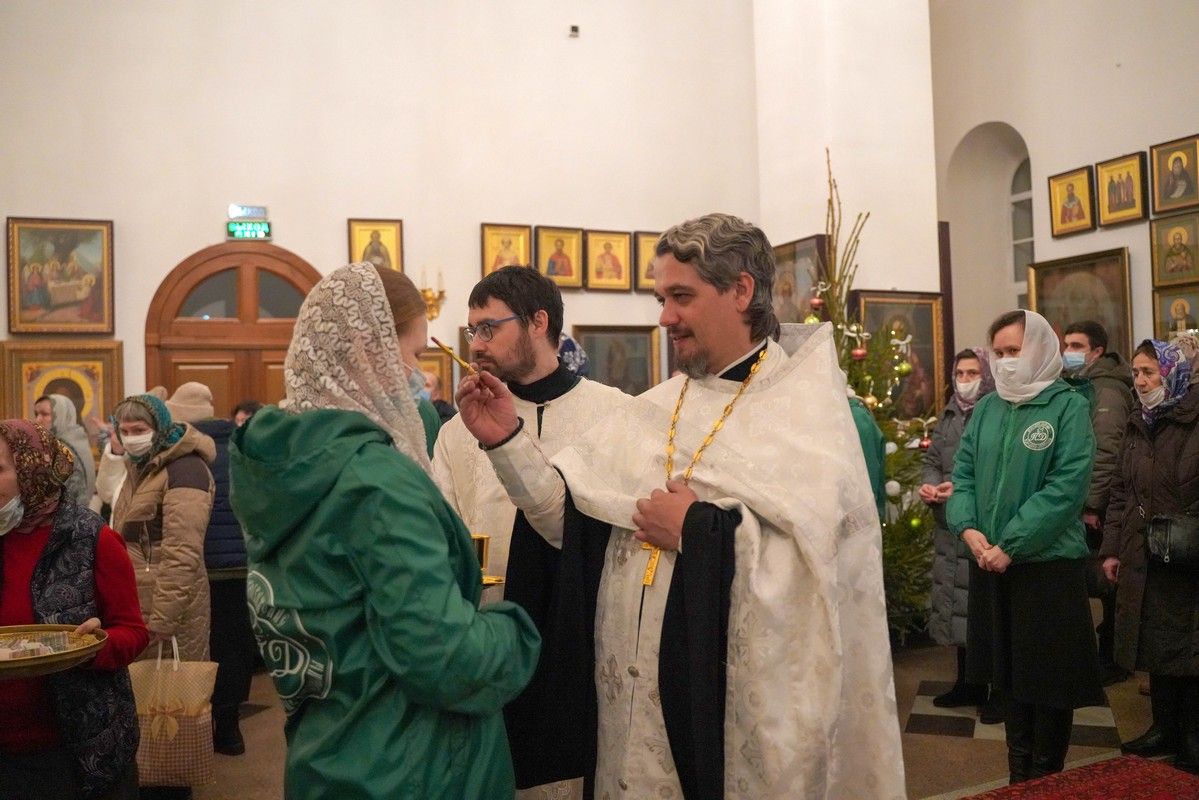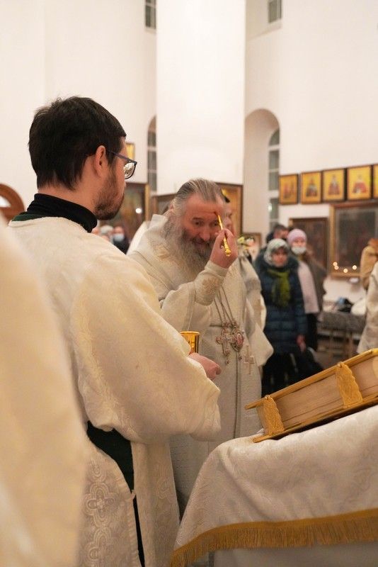Владыке сослужили настоятель храма иерей Александр Лоскутов, клирики храма иереи Никита Смирнов, Димитрий Дьяков, Евгений Симаков, диаконы Артемий Бобоч и Димитрий Кудряшов, а также протодиакон Михаил Козловский. Песнопения исполнял хор храма под управлением регента Наталии Поповой.