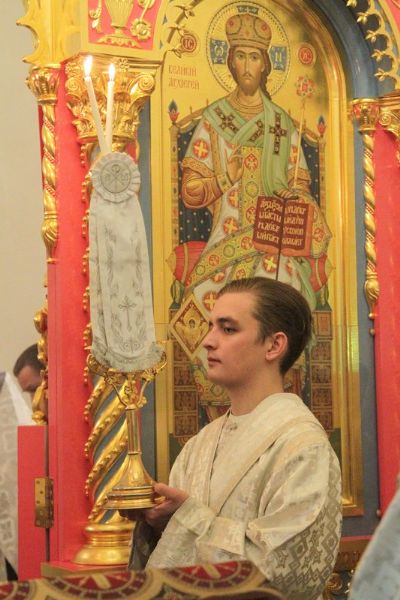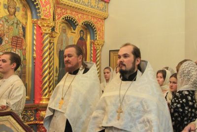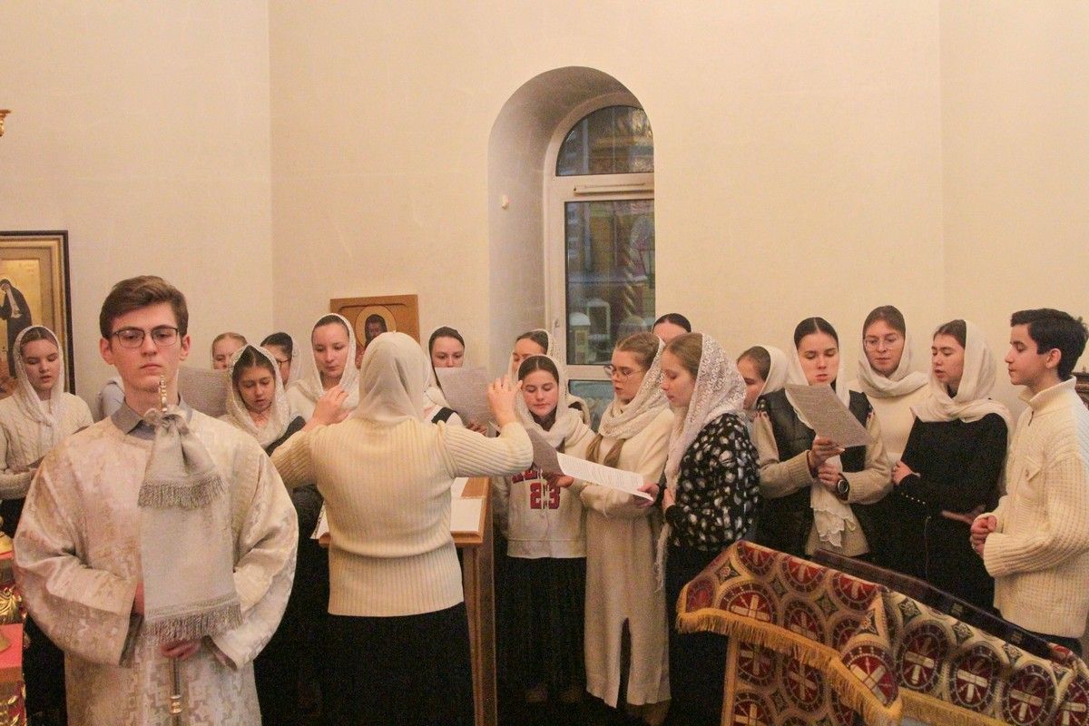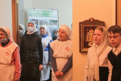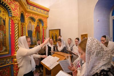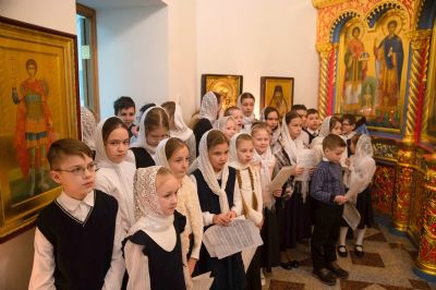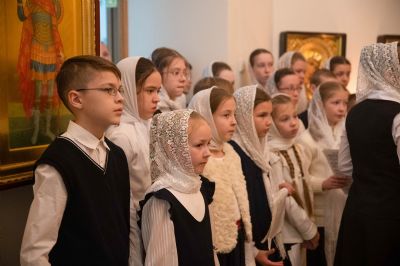 За богослужением молились сестры Сестричества милосердия в честь святой преподобномученицы Великой княгини Елисаветы. Песнопения исполняли антифонно старшая и младшая группы хора «Благовест» под управлением регентов Татьяны Черновой и Надежды Поздеевой.