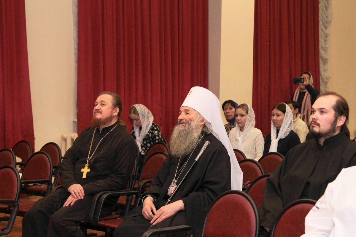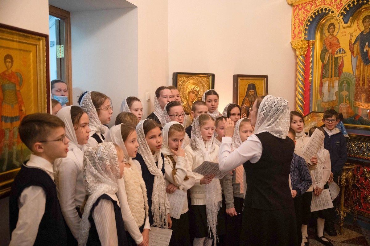 Архипастырю сослужили руководитель Православного центра, духовник детско-юношеского хора «Благовест» протоиерей Сергий Поглазов, руководитель социального отдела епархии иерей Алексий Михеев, клирик Благовещенского кафедрального собора иерей Александр Староверов и протодиакон Михаил Козловский.