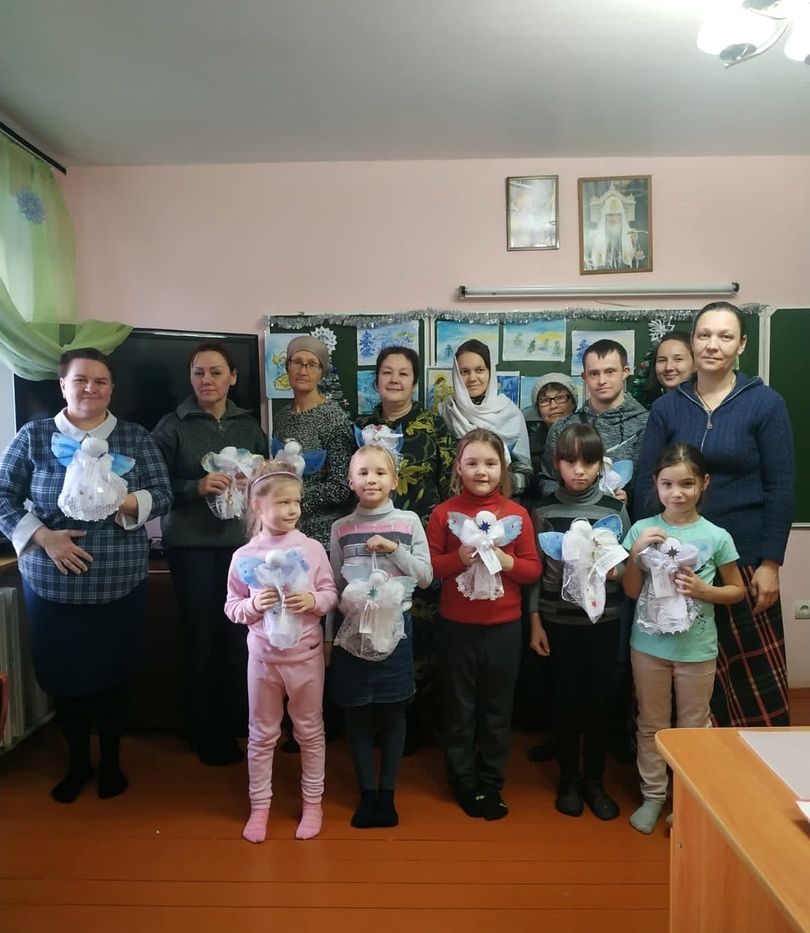 Представители отдела церковной благотворительности и социального служения (руководитель отдела иерей Алексей Скрябин, сотрудник отдела Светлана Краснюкова) совместно с творческим сообществом «Семейная мастерская» под руководством Марины Скрябиной изготовили рождественских ангелов и преподнесли в дар собравшимся. Дети с родителями в течение двух месяцев трудились, чтобы подарить радость Рождества Христова ближним.