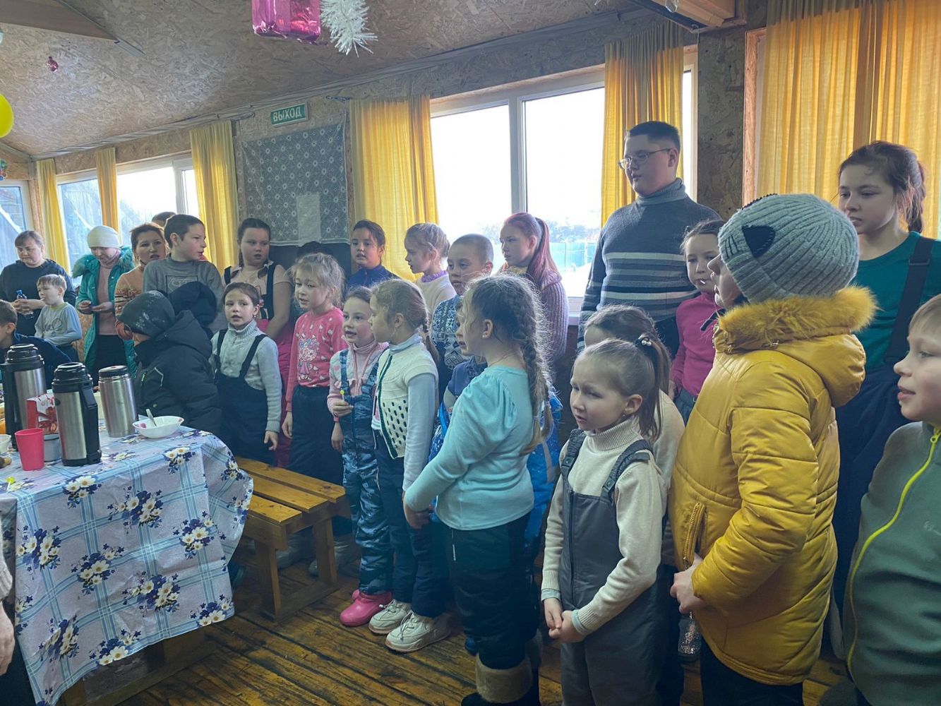 В нынешнем году рождественский праздник для воспитанников воскресной школы храма Всех святых, в земле Российской просиявших п. Советский прошел в необычном формате – за пределами школы, на свежем воздухе. По инициативе родителей было принято решение отпраздновать Рождество Христово на территории клуба активного отдыха «Викинг», расположенного в д. Фокино Советского района. Здесь размещаются горки и иные игровые объекты, мангал, домики, где можно обогреться, потрапезничать, провести спокойные игры.